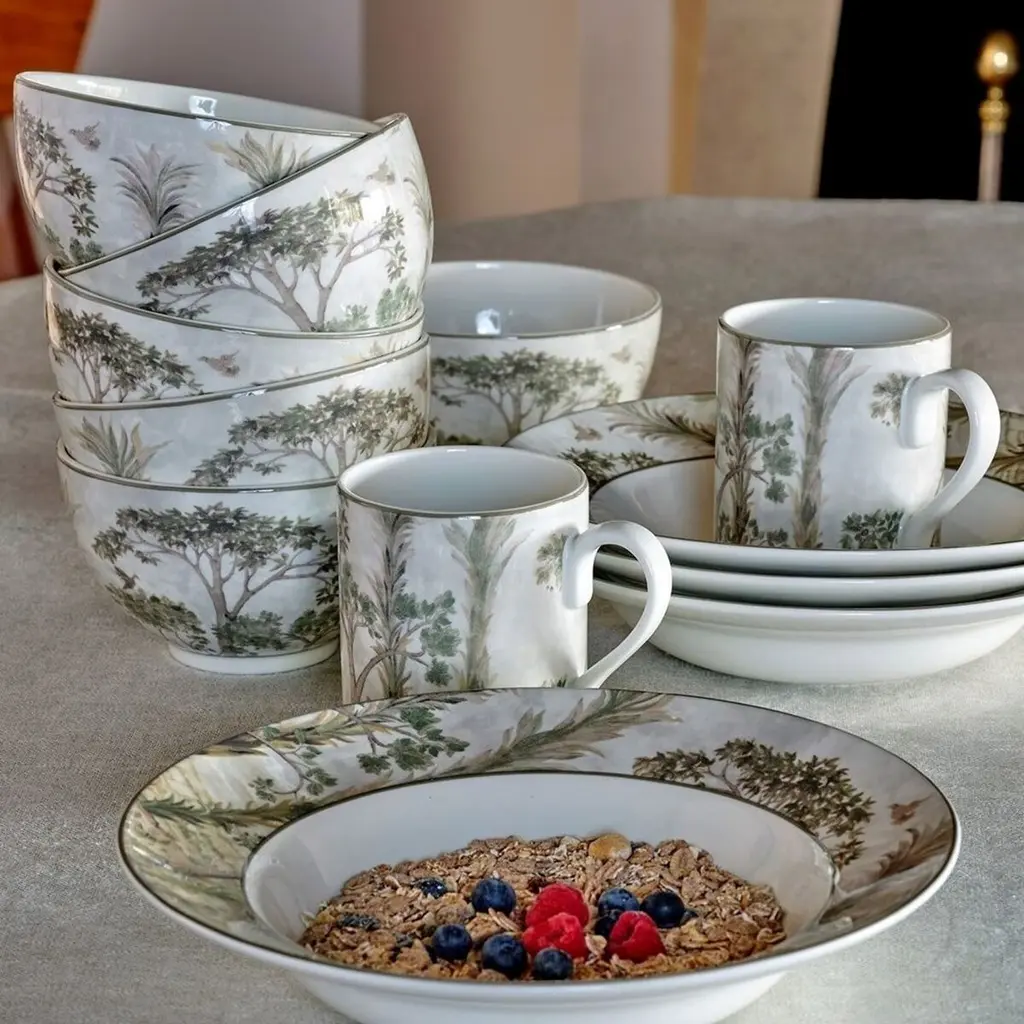 A must-have for your collection, this set of 4 pasta bowls features a beautiful design of treetops and rolling hills. Perfect for serving pasta, soups and salads when hosting family and friends, dishwasher and microwave safe.
