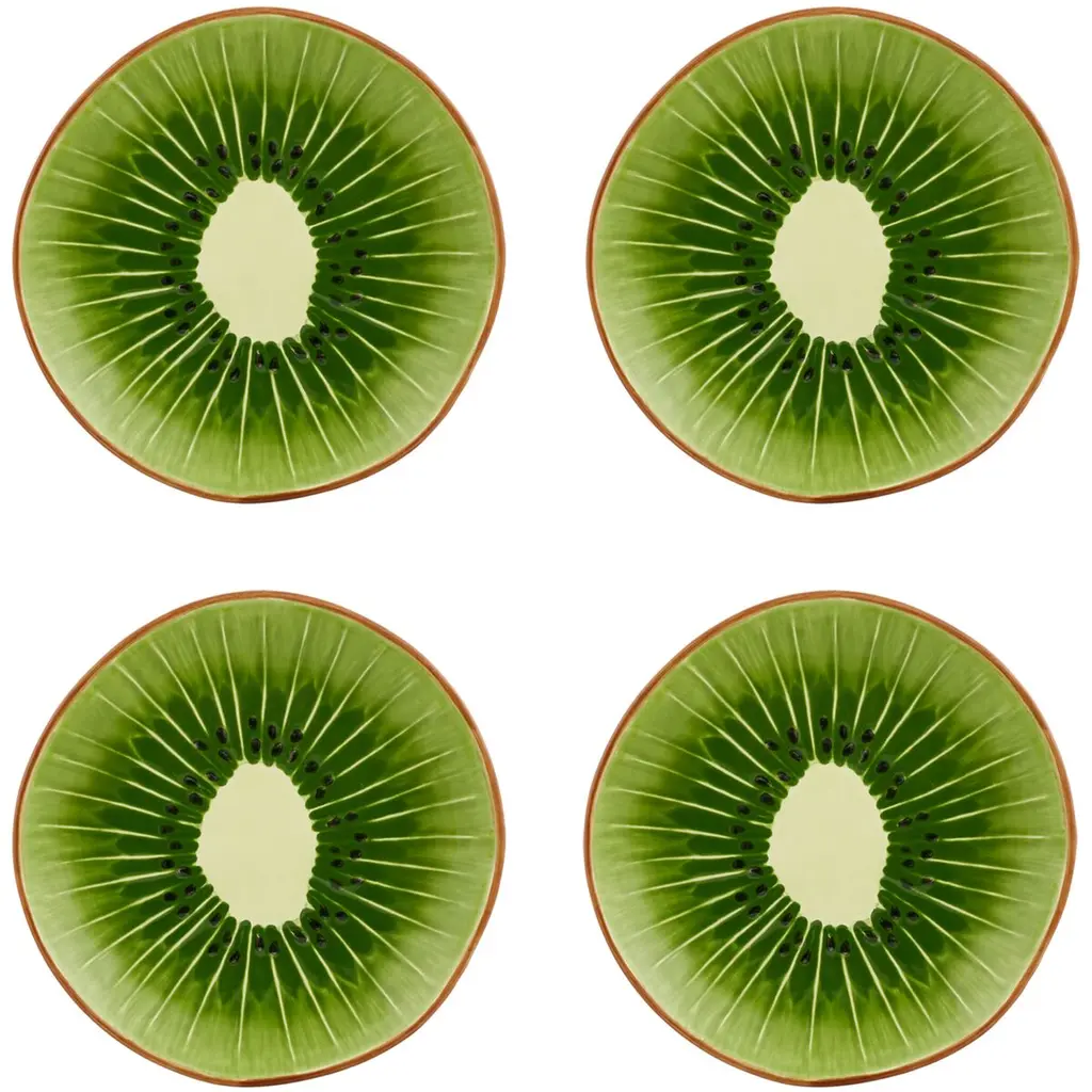 S/4 Tropical Fruits Kiwi Dessert Plates, Multi