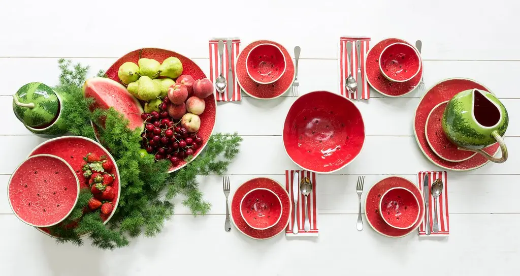 Even more delightful than lettuce ware is watermelon ware. This set of artisanal earthenware plates, crafted in Portugal, are a prime example. The undersides look like watermelon rinds, while the tops resemble the juicy pink flesh. Because the dishes are dishwasher safe and microwave safe, you can use them every day.