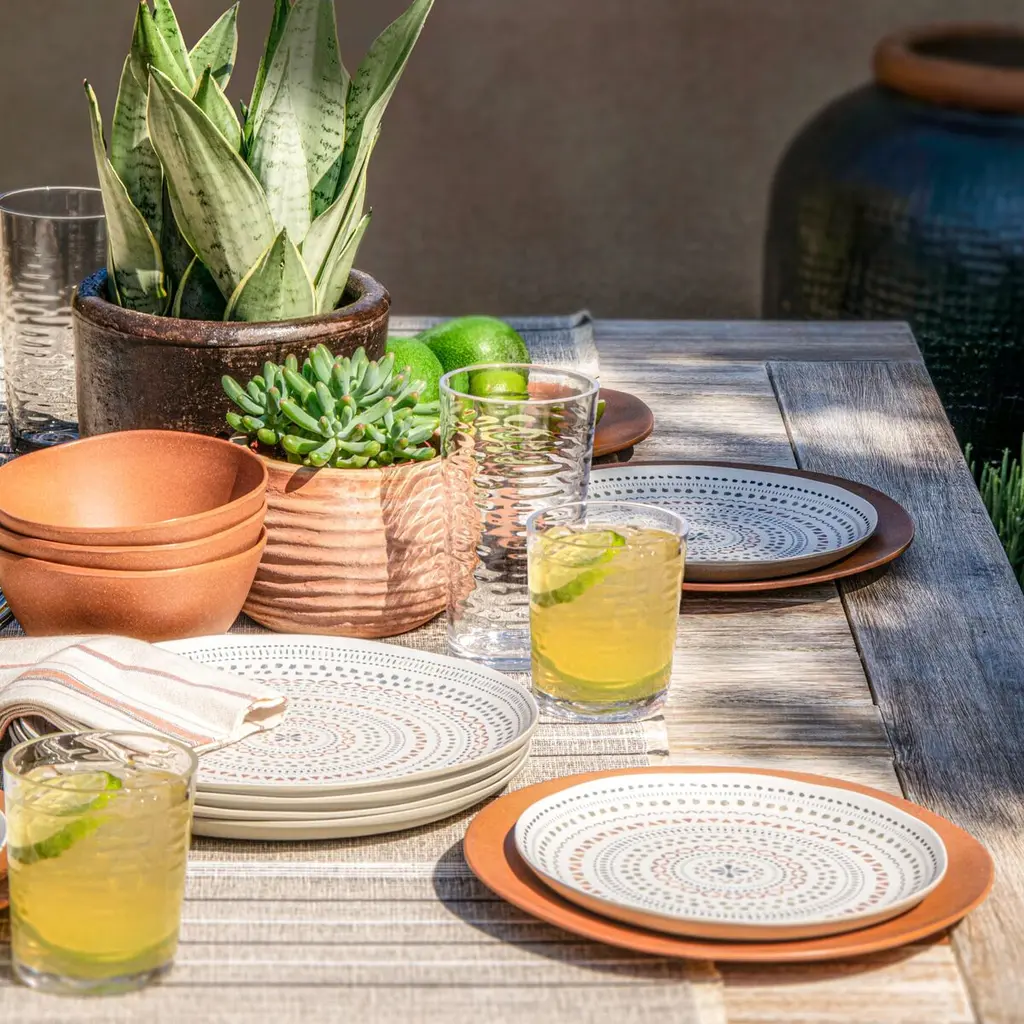 The six salad plates in this set are made of plant material bound with melamine. As a result, they're shatterproof as well as resistant to scratches and chips, making them ideal for dining outdoors or with little ones. All that, and they're dishwasher safe too.
