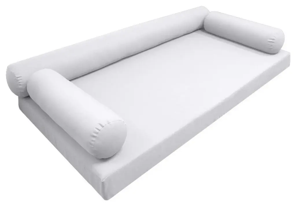 • • • • FABRIC SAMPLE IS AVAILABLE, PLEASE CONTACT US • • • • Style-6 Queen Size 4 PC Knife Edge Mattress Bolster Cover Set ONLY• • MATTRESS AND INSERTS NOT INCLUDED• • Fully Encase Cover with Hidden Zipper• 1 x Queen Fitted Sheet Cover Only: 80" x 60" x 6"• 2 x Bolster Pillow Cover Only: 48" x 8"• 1 x Bolster Pillow Cover Only: 78" x 8"• Color: AD105• THIS COLOR IS NOT WHITE. IT IS LIGHT GREY• Edge Trim: Knife Edge • Fabric: 230 Gram Polyester Upholstery• Hidden Zipper• Water Repellent • Not Water Proof• • Tips: Please cover or store cushion pillow in rainy season• Cleaning: Soap clean and rinse off with water hose. Outdoor durable!• Quantity: 1