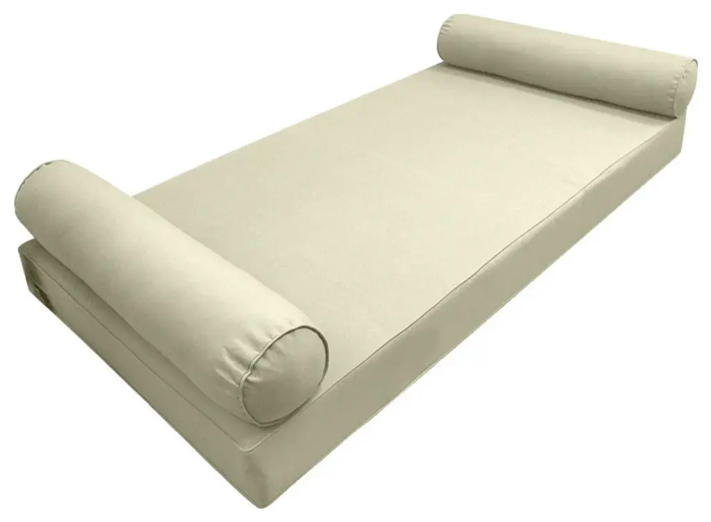 • Style-6 Queen Size 4 PC Knife Edge Mattress Bolster Cover Set ONLY• • MATTRESS AND INSERTS NOT INCLUDED• • Fully Encase Cover with Hidden Zipper• 1 x Queen Fitted Sheet Cover Only: 80" x 60" x 6"• 2 x Bolster Pillow Cover Only: 48" x 8"• 1 x Bolster Pillow Cover Only: 78" x 8"• Color: AD106• Edge Trim: Knife Edge• Fabric: 230 Gram Polyester Upholstery• Hidden Zipper• Water Repellent • Not Water Proof• • Tips: Please cover or store cushion pillow in rainy season• Cleaning: Soap clean and rinse off with water hose. Outdoor durable!• Quantity: 1