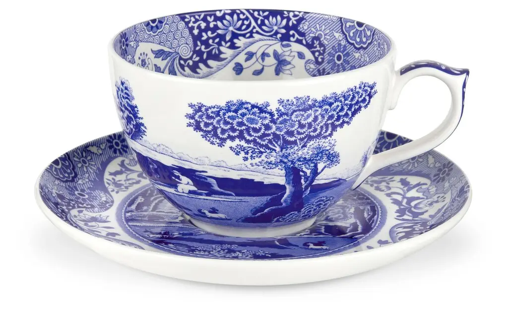 Sacred Bird & Butterfly Blue Tea Cup & Saucer