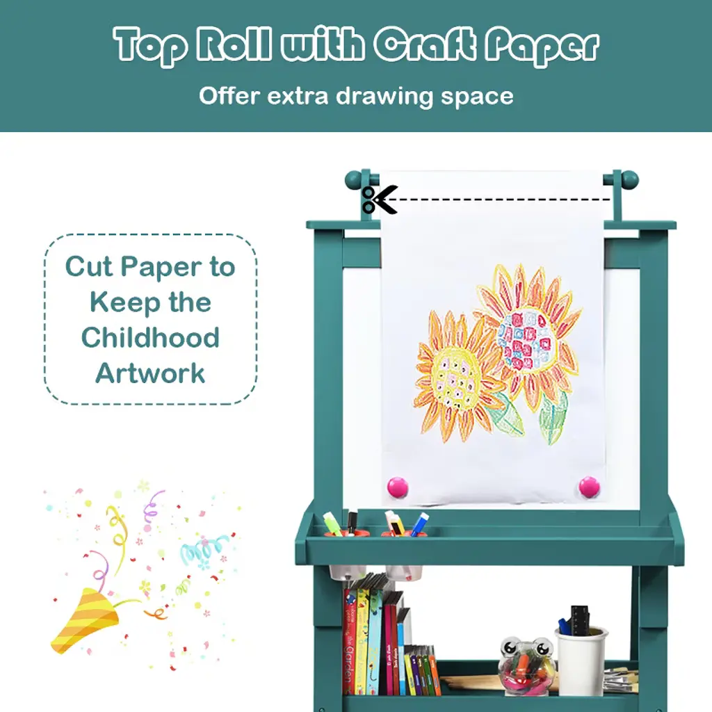 Safstar 3 In 1 Double-sided Storage Art Easel W/paint Cups For Kid Writing Teal Frosting