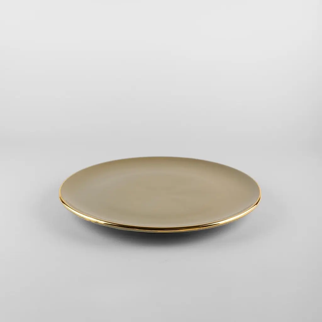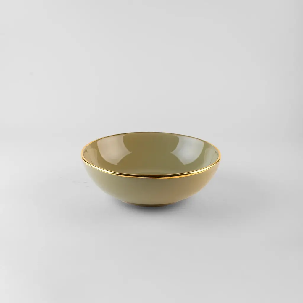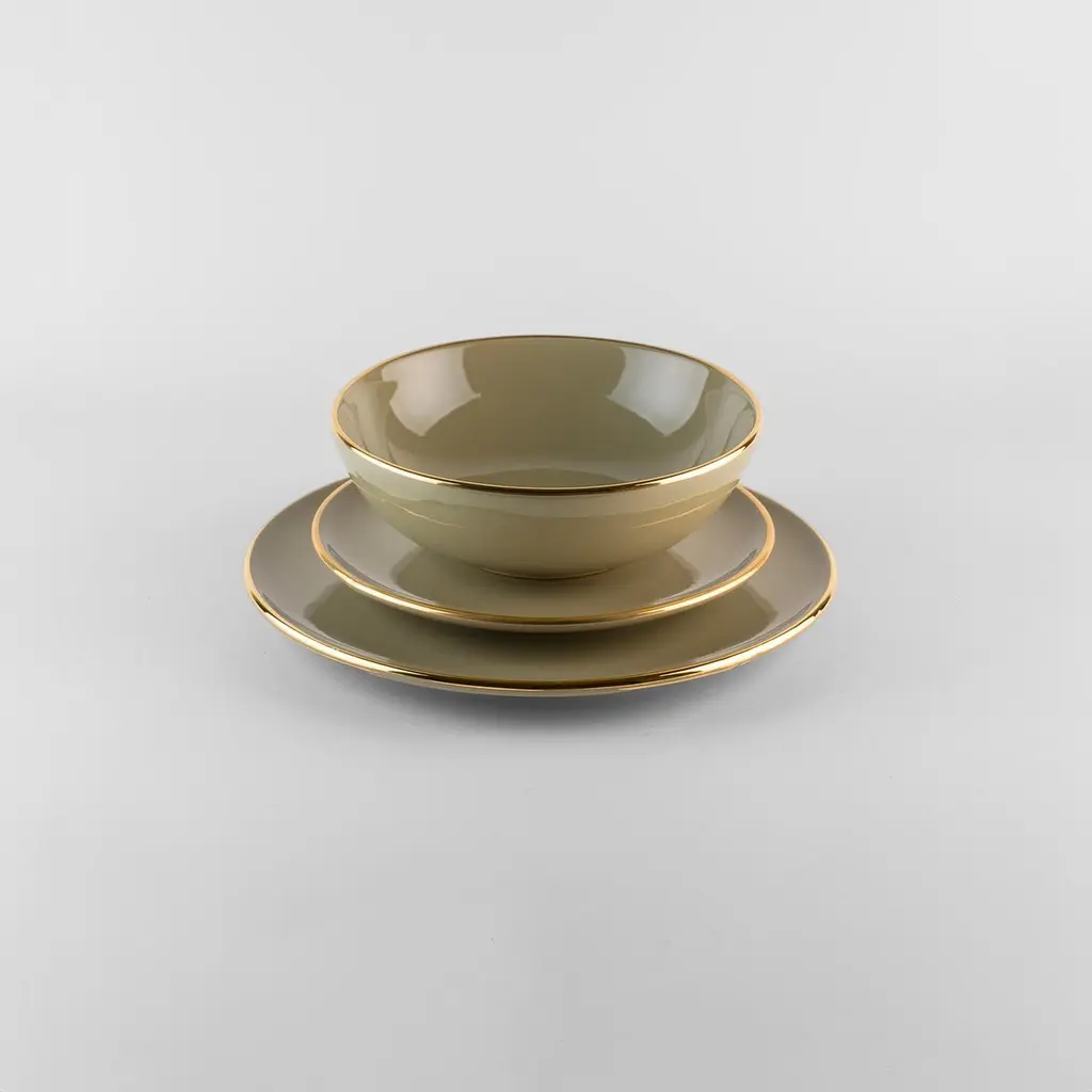Sage Green Plates Gold Rim: Soup, Holder, Side Plate For 4 Handmade Italy 2024