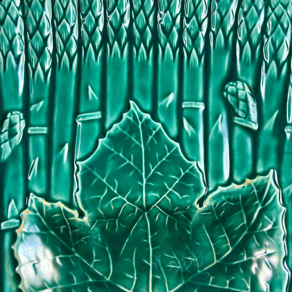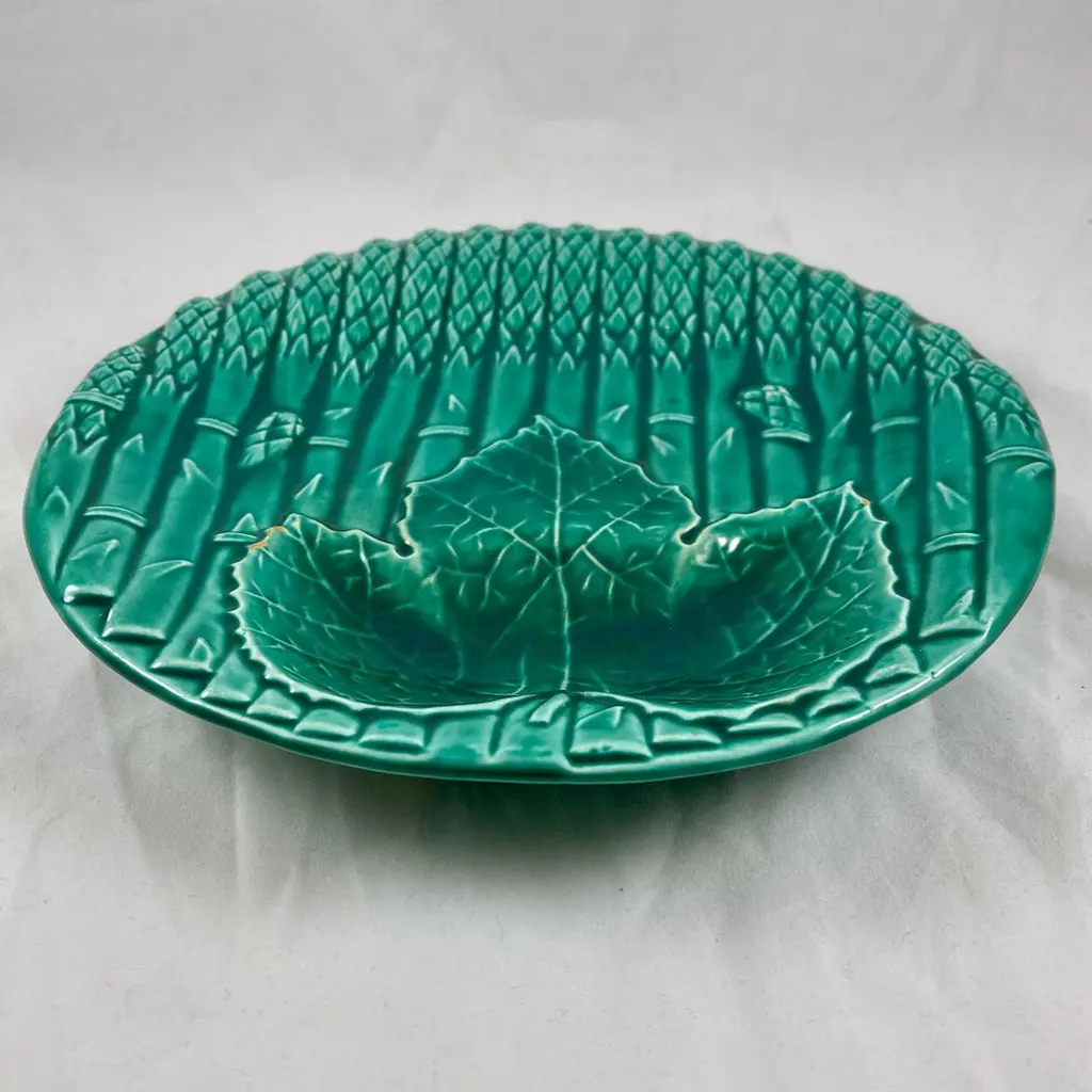Saint Amand Et Hamage Green French Faïence Asparagus Plate, 1930s