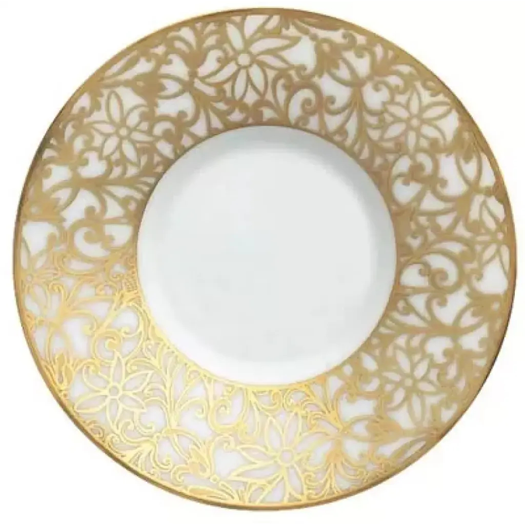 Our Salamanque dinnerware will bring a touch of romance to the table. The ornate pattern of vines calls to mind the Art Nouveau architecture of Salamanca, Spain. Each piece is crafted from Limoges porcelain and finished with gold or platinum trim. Also available by special order in the following colors: Gold/Green, Gold/Rouge, Gold/Turquoise, Gold/Ivory, Gold/Black. Five-piece place setting includes dinner plate, salad plate, bread/butter plate, teacup, and saucer. Raynaud was established in 1849 and is the only survivor of 11 porcelain factories existing in Limoges, France. After years of research, Raynaud discovered techniques to create infinite combinations of fade-resistant decorations that is still used by porcelain makers. Boasting a client list of numerous presidents to Princess Diana, Raynaud has been the synonym of quality, known and recognized on every continent.