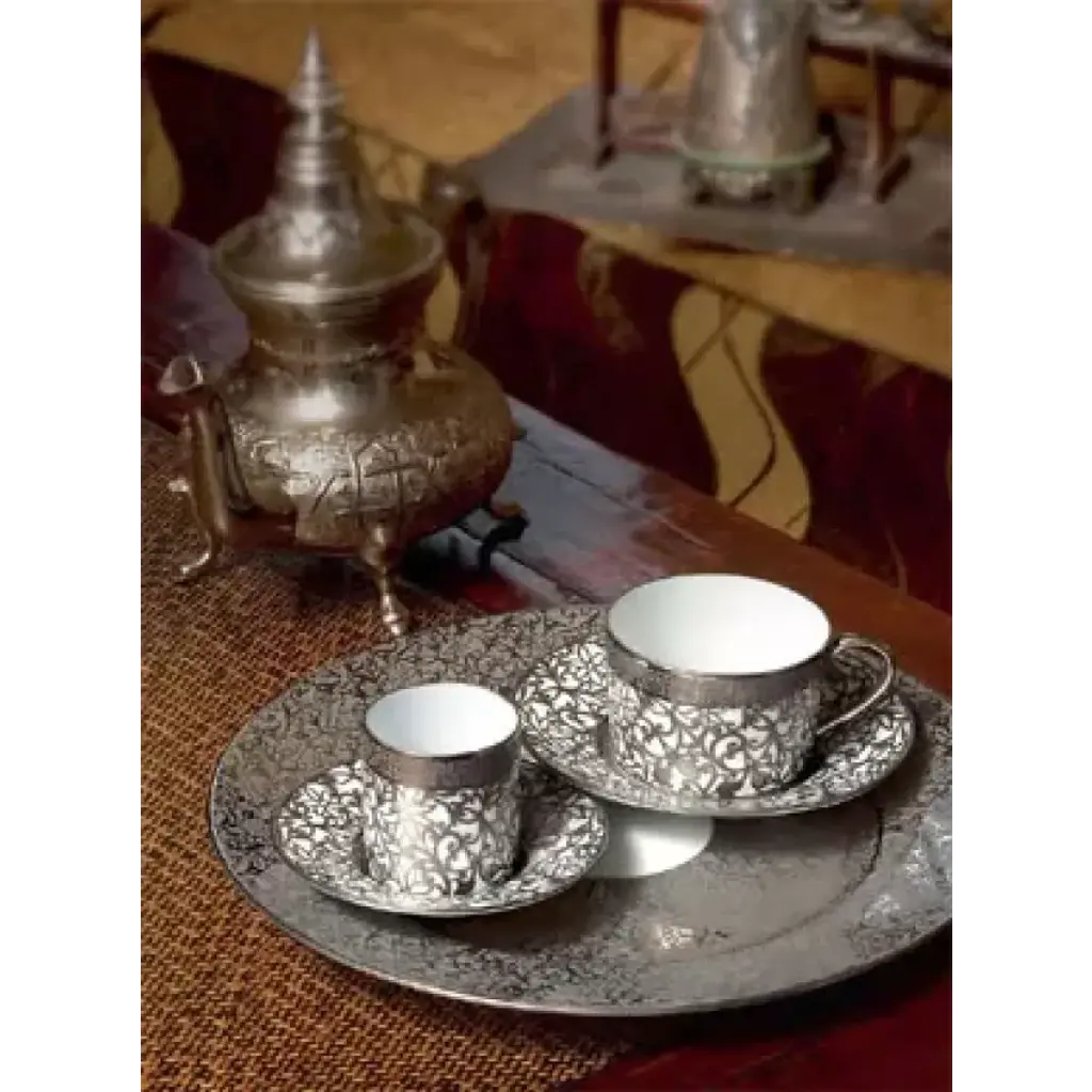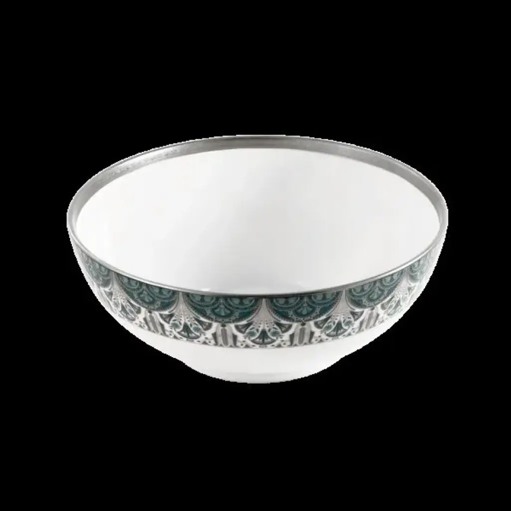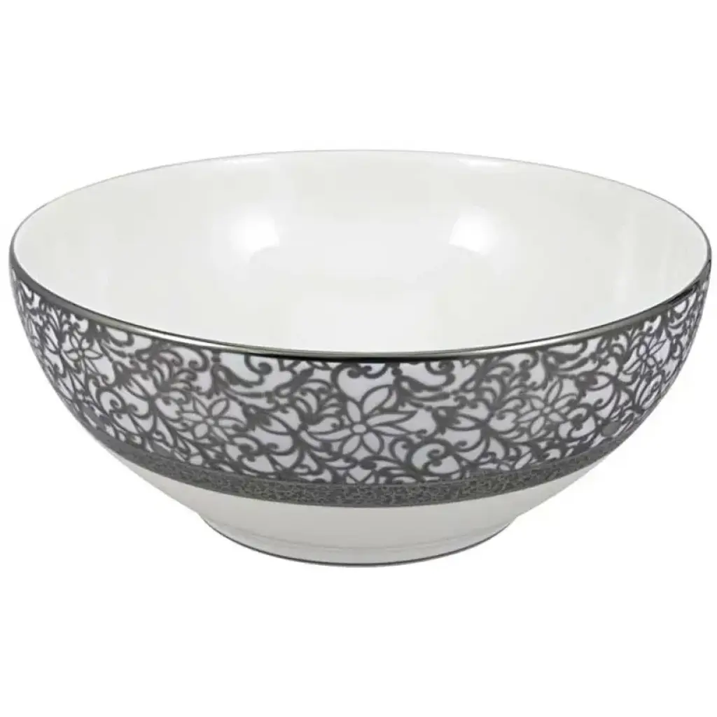 Our Salamanque dinnerware will bring a touch of romance to the table. The ornate pattern of vines calls to mind the Art Nouveau architecture of Salamanca, Spain. Each piece is crafted from Limoges porcelain and finished with gold or platinum trim. Also available by special order in the following colors: Gold/Green, Gold/Rouge, Gold/Turquoise, Gold/Ivory, Gold/Black. Five-piece place setting includes dinner plate, salad plate, bread/butter plate, teacup, and saucer. Raynaud was established in 1849 and is the only survivor of 11 porcelain factories existing in Limoges, France. After years of research, Raynaud discovered techniques to create infinite combinations of fade-resistant decorations that is still used by porcelain makers. Boasting a client list of numerous presidents to Princess Diana, Raynaud has been the synonym of quality, known and recognized on every continent.