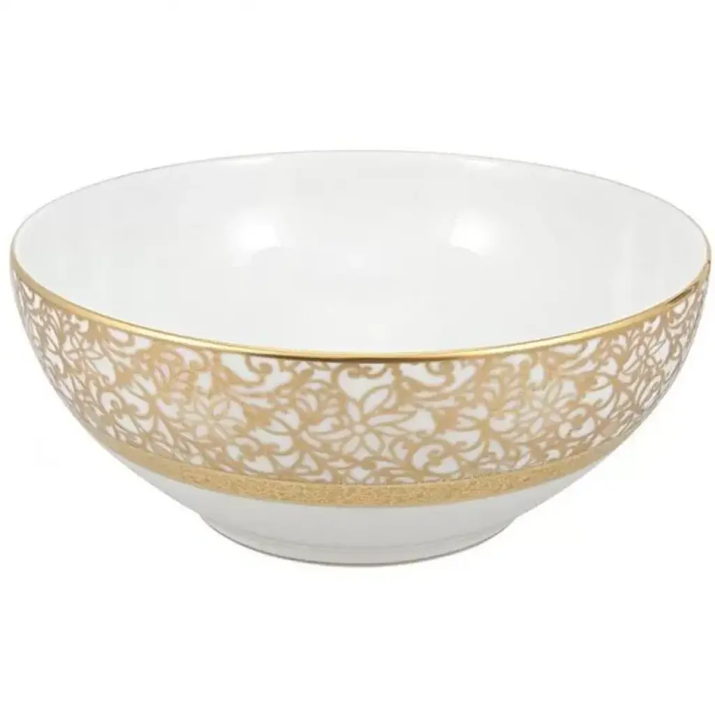 Salamanque Or/gold White Salad Bowl Diam 9.8 In