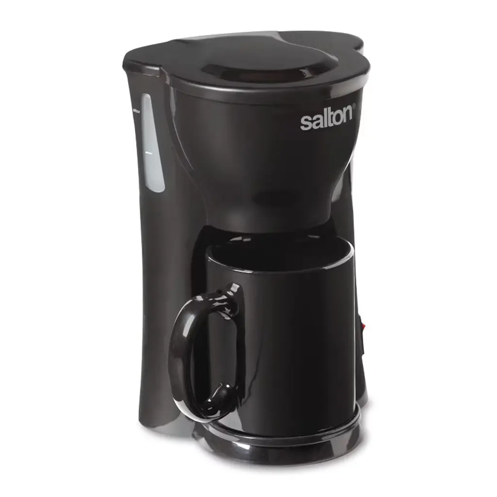Salton 1 Cup Mini Compact Drip Coffee Maker With Reusable Mesh Filter, With Bonus Ceramic Mug For Home Or Office, 10 Ounce Capacity, Black (Fc1205)