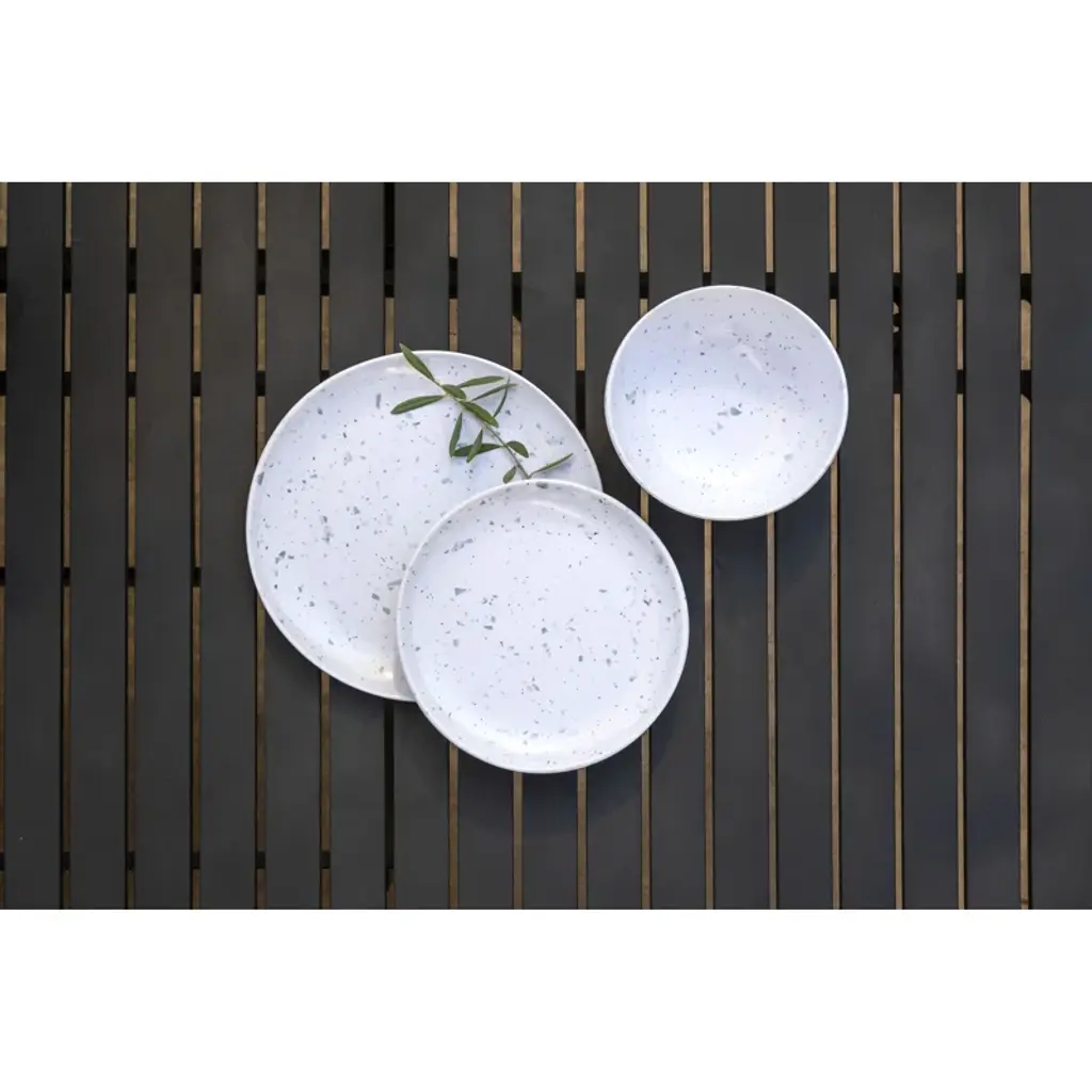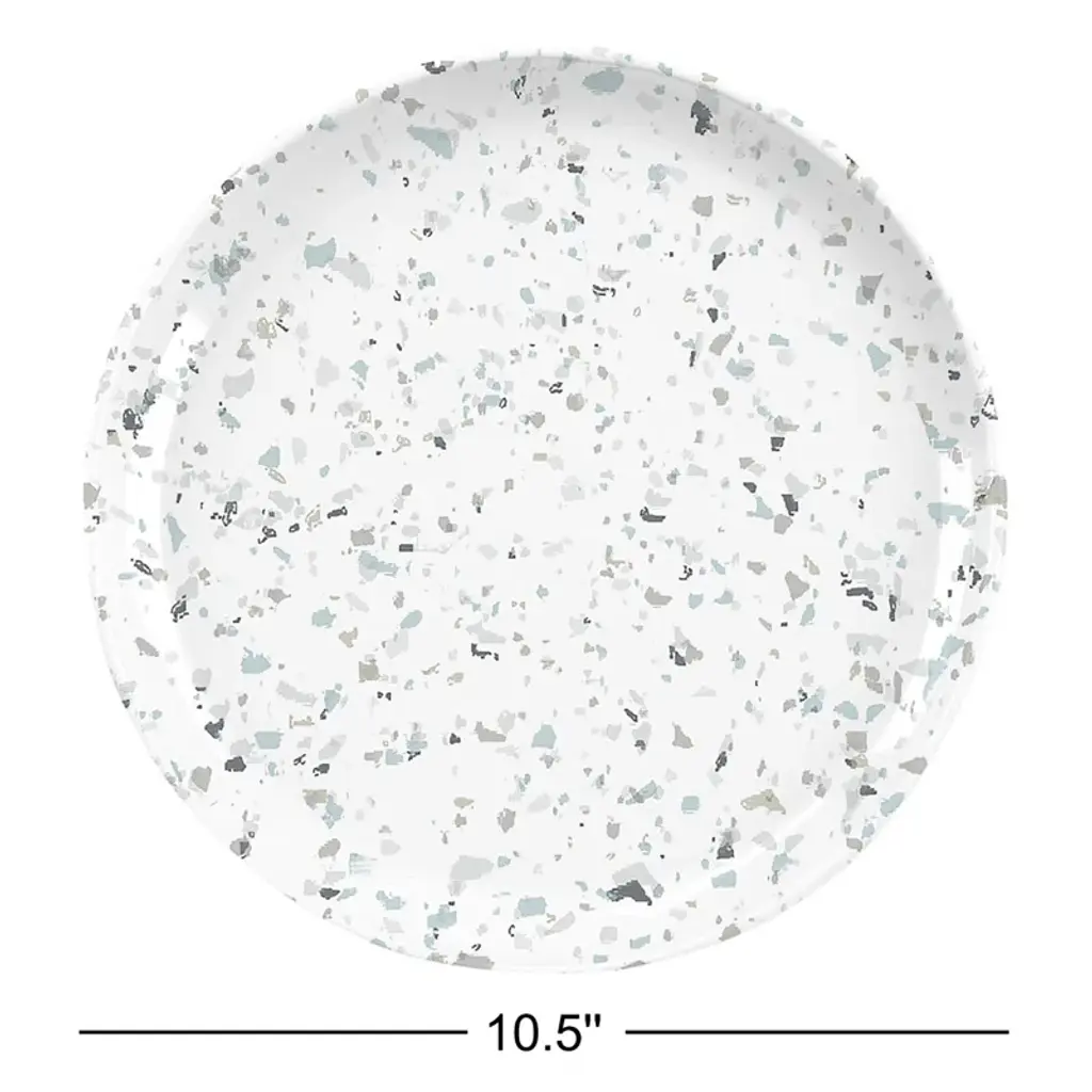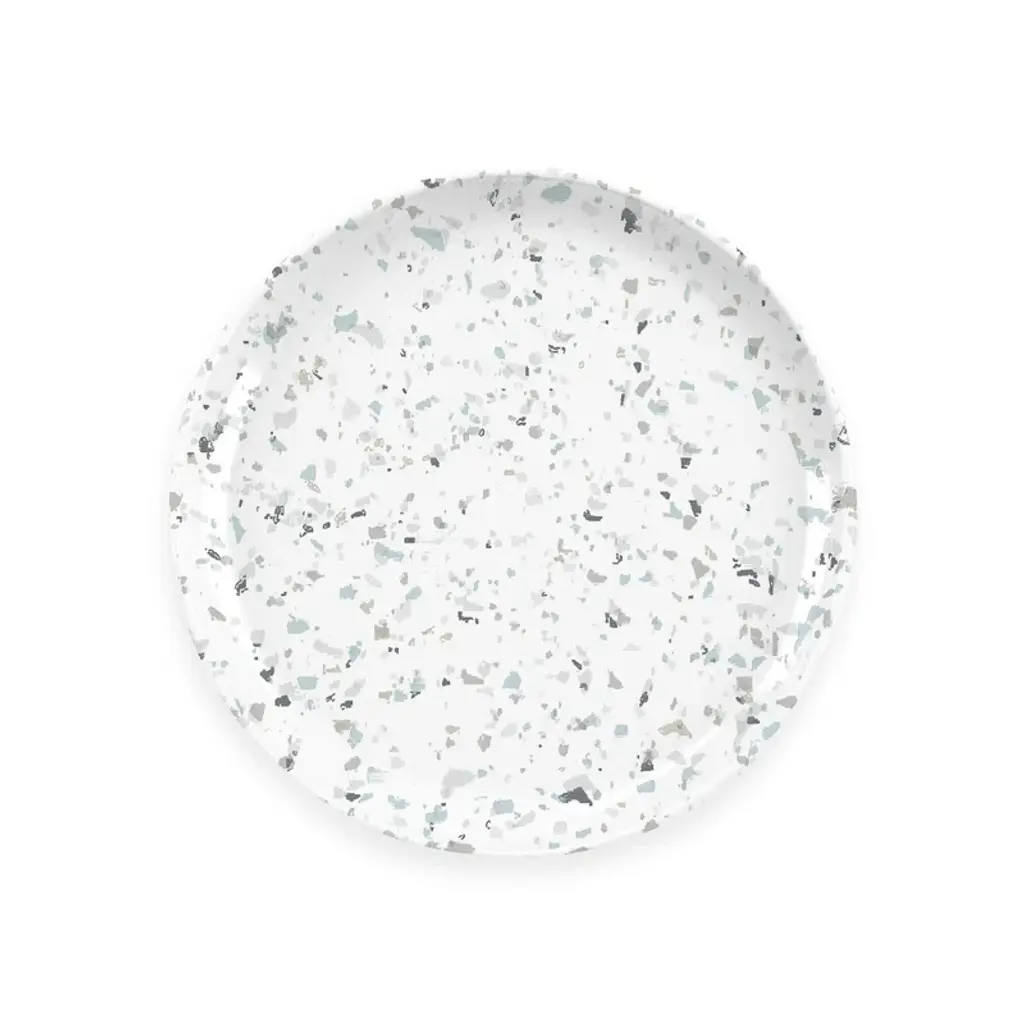 Durable indoor + outdoor dining. These dinner plates – or hot dog, hamburger, whipped cream + berries plates – layer a muted terrazzo-style pattern onto lightweight, dishwasher-safe melamine. They arrive in a set of six, to buy you a little more time between loads of dishes.