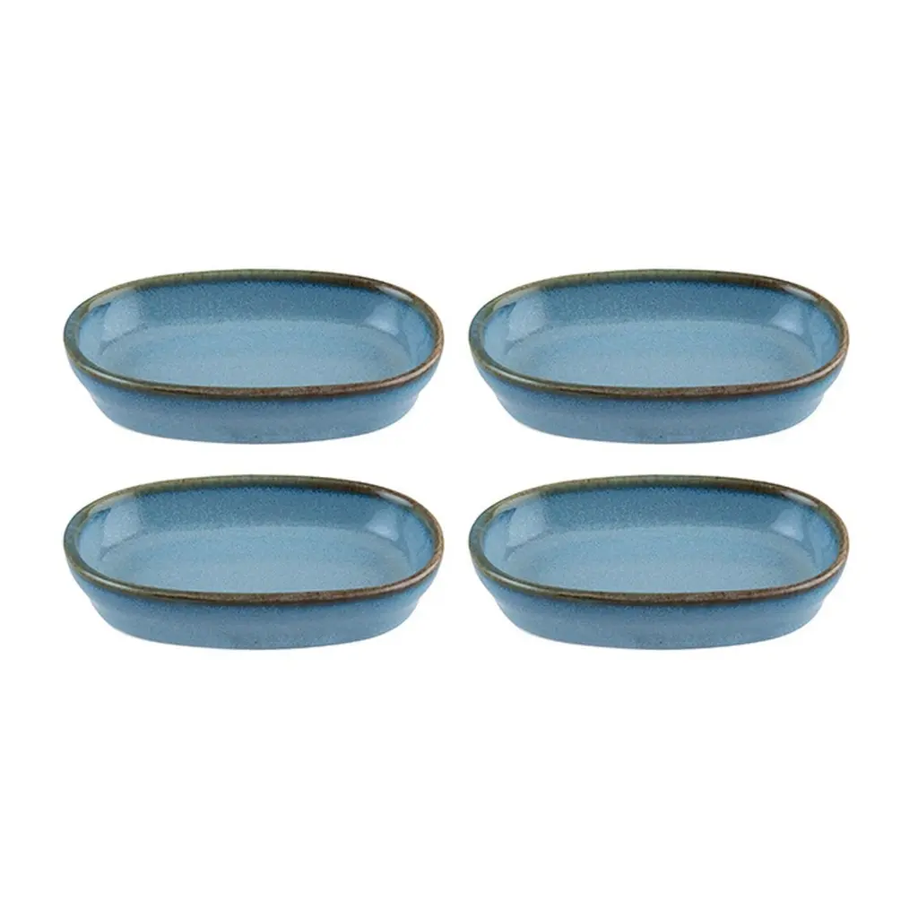 Sand Oval Beige Porcelain Side Platters, Set Of Four