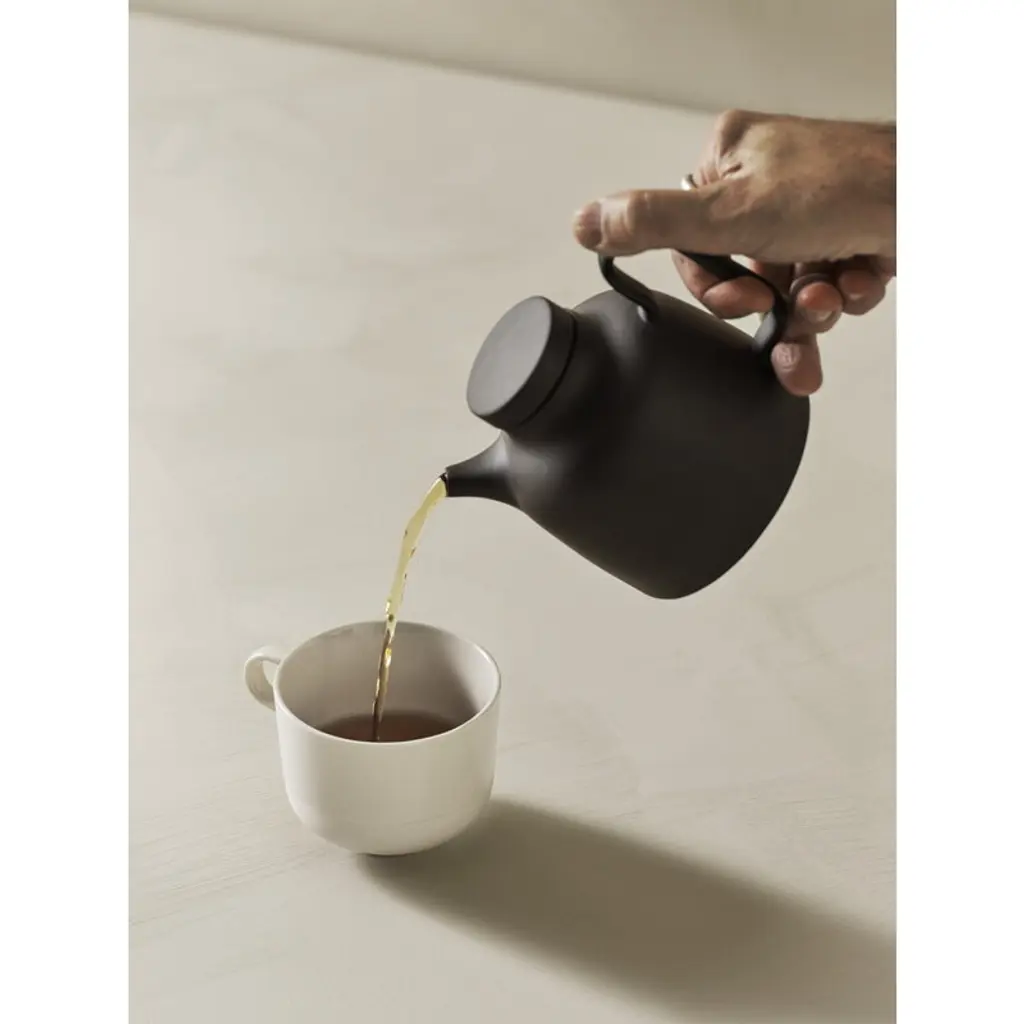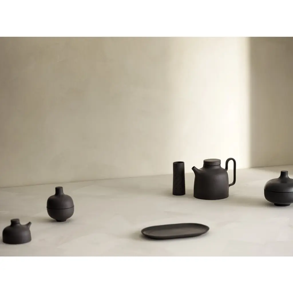 The Sand Secrets teapot by Design House Stockholm is made of high-fired stoneware. The teapot with a tea strainer is traditionally used for coffee and tea but can also be used for serving juice and other refreshments. Without a lid, the soy pot serves as a unique vase for small flowers. Carina Seth Andersson designed the original Sand tableware for the restaurant NM& at Stockholm’s Nationalmuseum as part of the museum's renovation project. The Sand Secrets collection complements the original dishware with bowls and pots — in this tableware, the focus is not just on the dishes but also on the secrets beneath their lids.