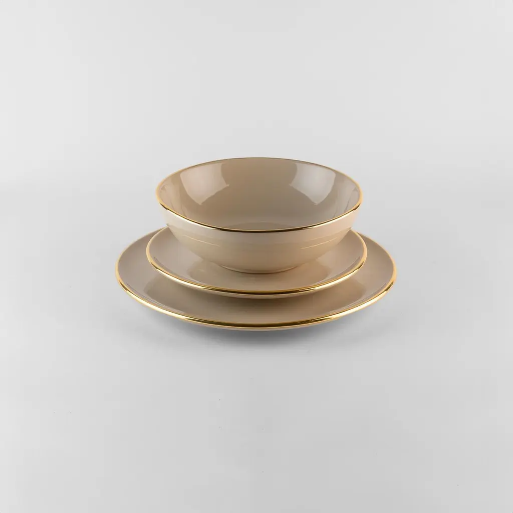 Sandy Plates Gold Rim: Soup, Holder, Side Plate For 4. Handmade In Italy 2024