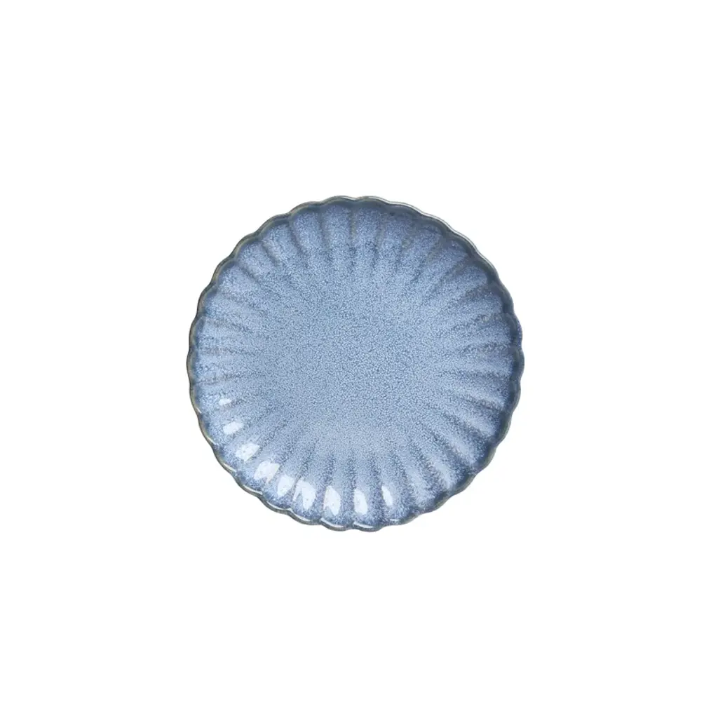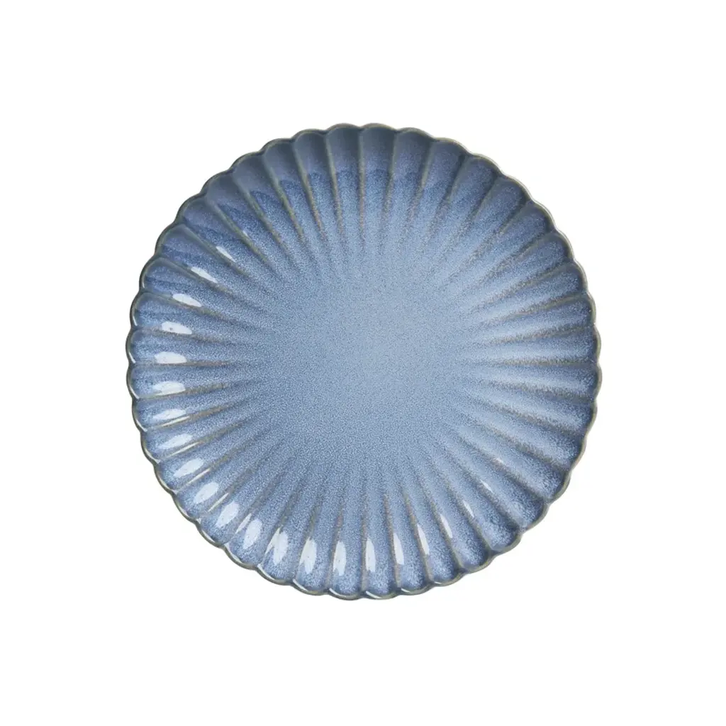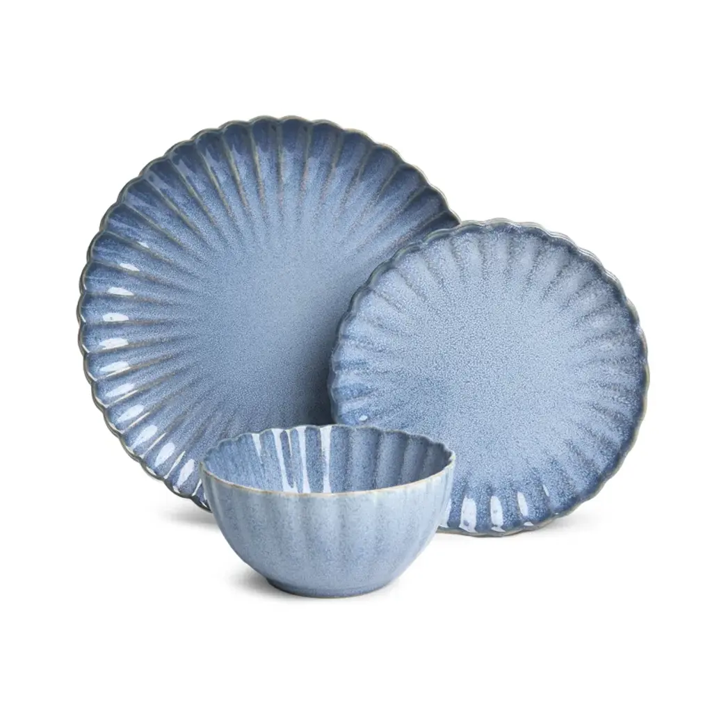 This scallop shaped dinnerware set brings a vintage French aesthetic to your dining table. The romantic style of these fluted shapes, combined with the reactive glaze, makes no two pieces exactly the same. Style these artisanal pieces with favorite teacups, dessert plates, and serving pieces, to give your upcoming dinner party or family gathering a very bohemian mix-and-match look.