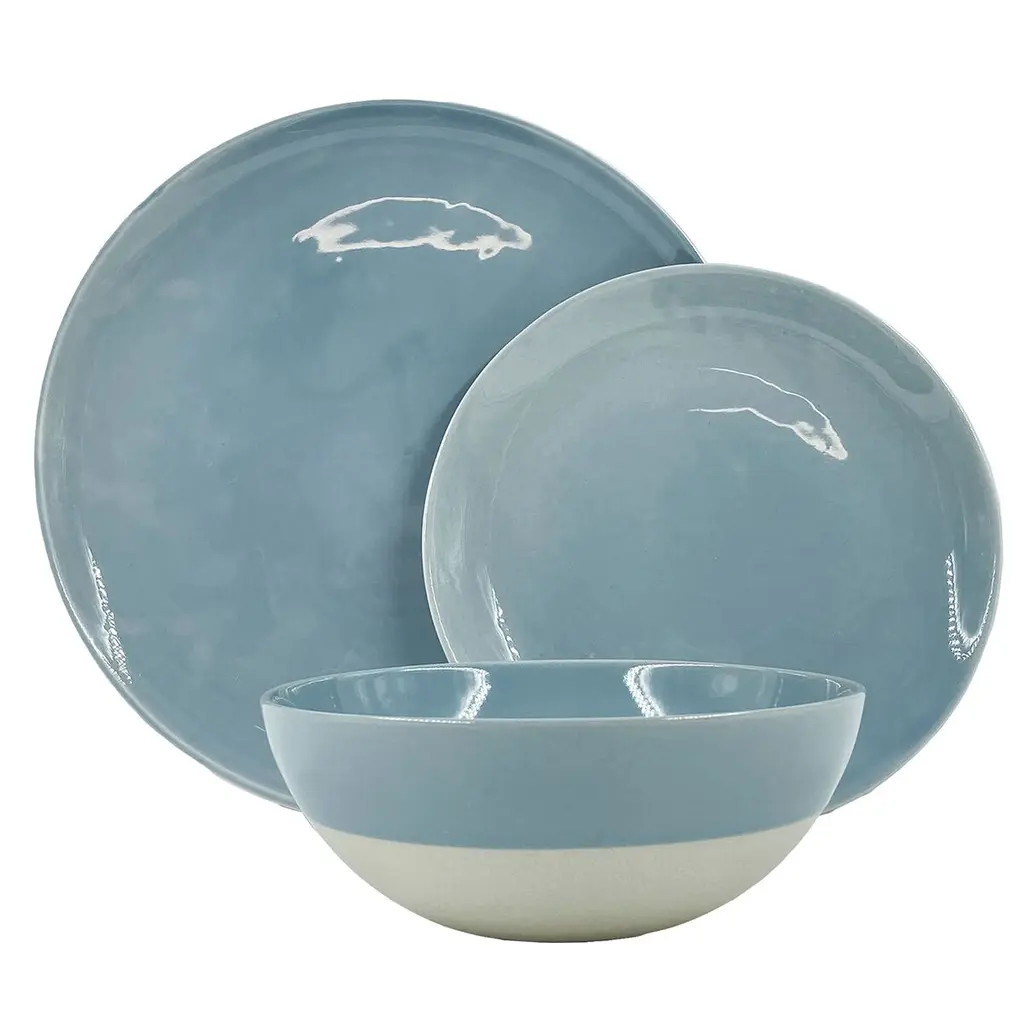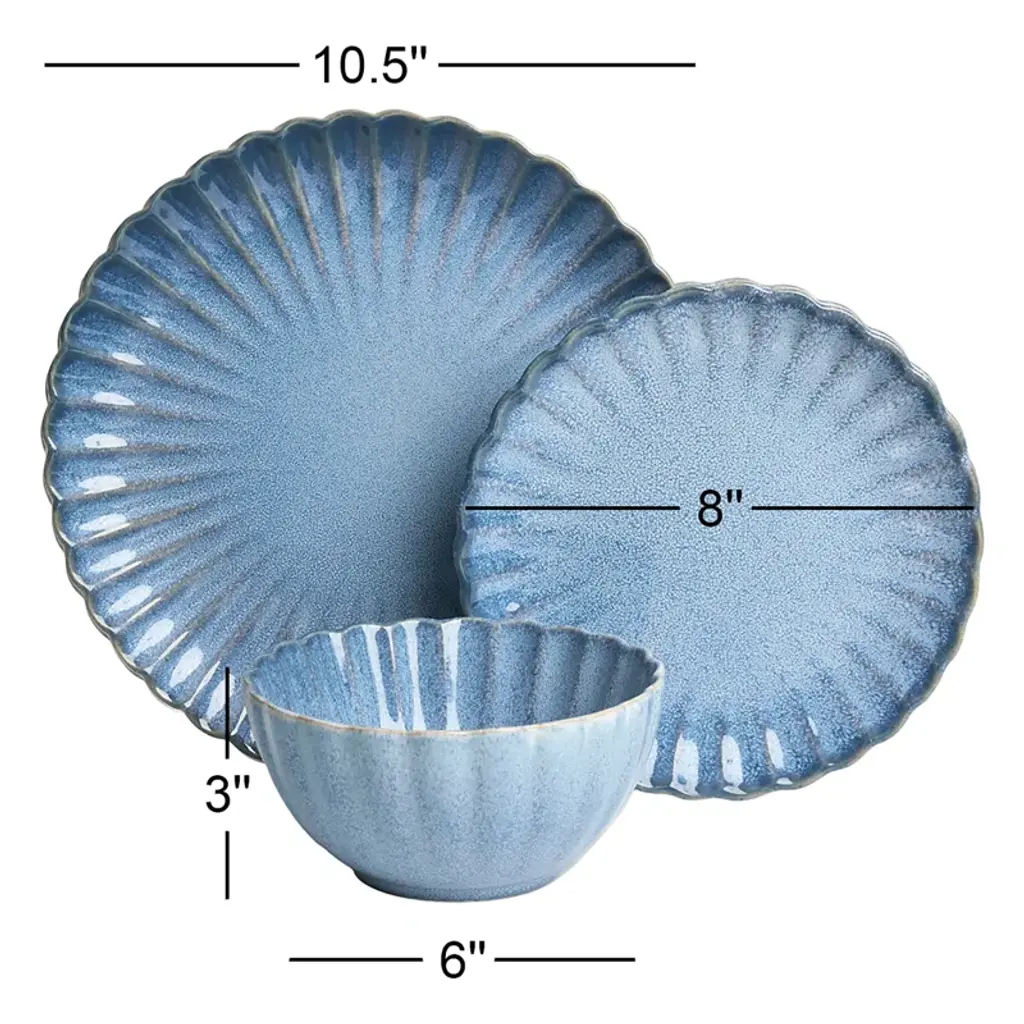 Sango Frill 12-Piece Casual Reactive Blue Dinnerware Set - Service For 4, Made Of Durable Stoneware
