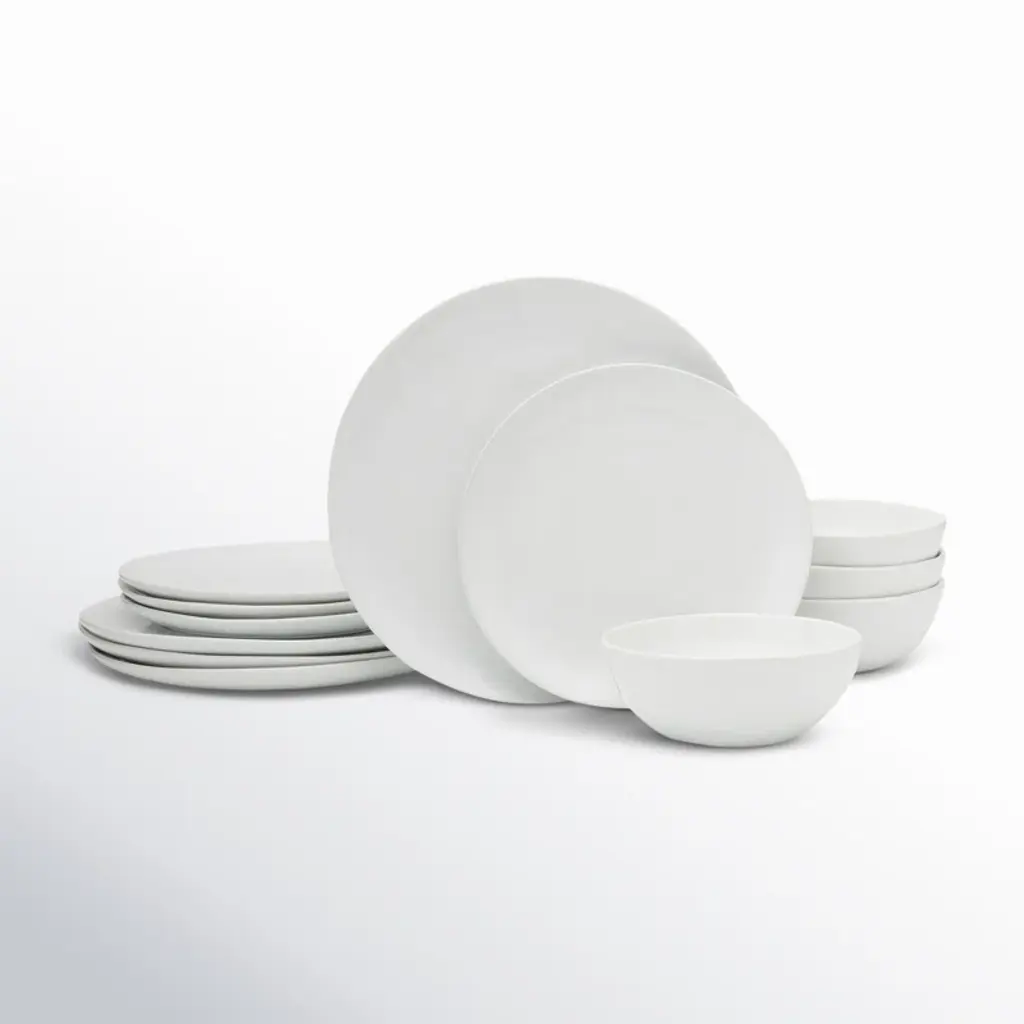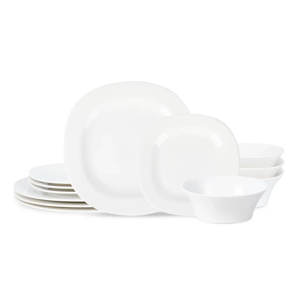 Sango Gansevoort 12-Piece White Stoneware Dinnerware Set – Service For 4, Plate & Bowl Set (Set Of 12)