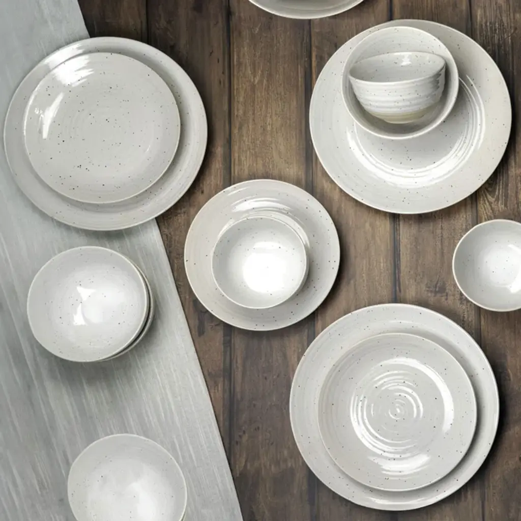Siterra rustic white dinnerware sets your table on a high note, whether you're hosting a family meal or entertaining guests. This versatile set mixes and matches easily with other dinnerware and serving pieces. Speckled white glaze and a complimentary brush of a warm, neutral hue give this dish set a modern, rustic charm. This collection is perfect for entertaining or everyday use. Top-of-the-line products with high quality and international standards are inherent in our DNA for four decades. We proudly carry out every aspect of the production in-house, from choosing precise raw materials to executing the most efficient production processes.