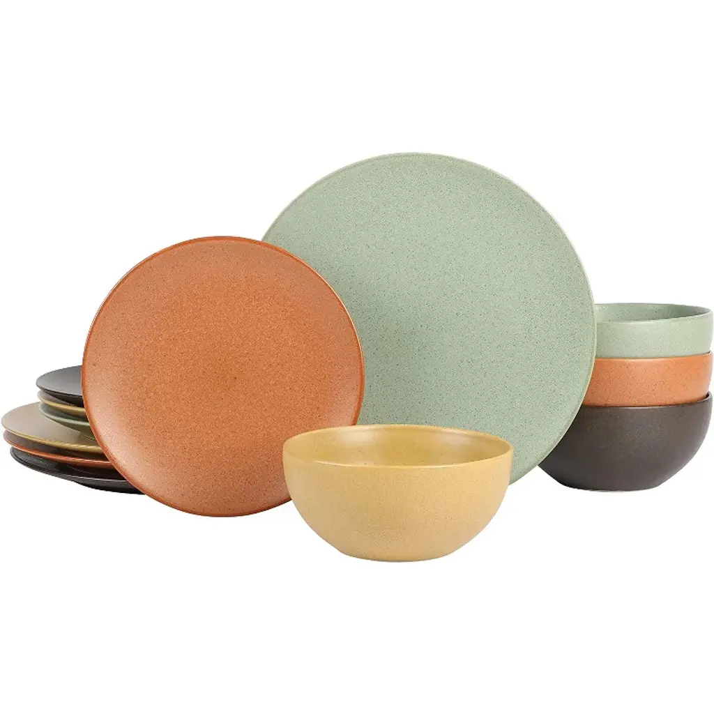 Sango Siterra Painter's Palette 16-Piece Stoneware Dinnerware Set - Service For 4, Plate & Bowl Set
