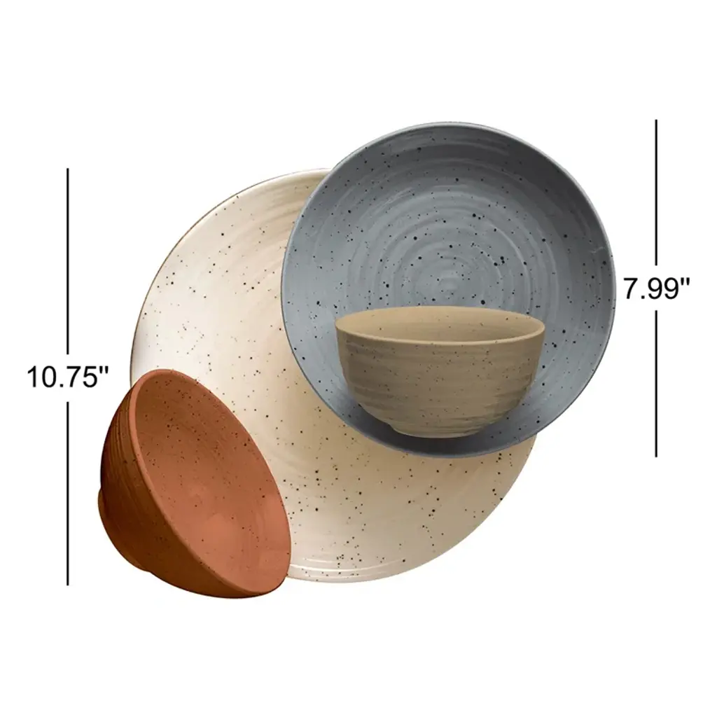 Bring a cozy and warm feel to your dinner table with this glossy finish set. Delicate speckles adorn each piece for a rustic charm.
