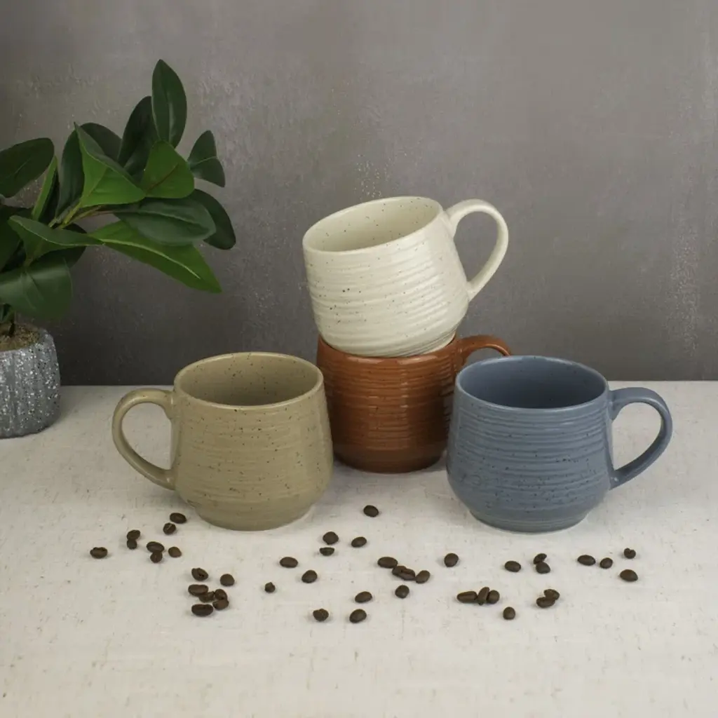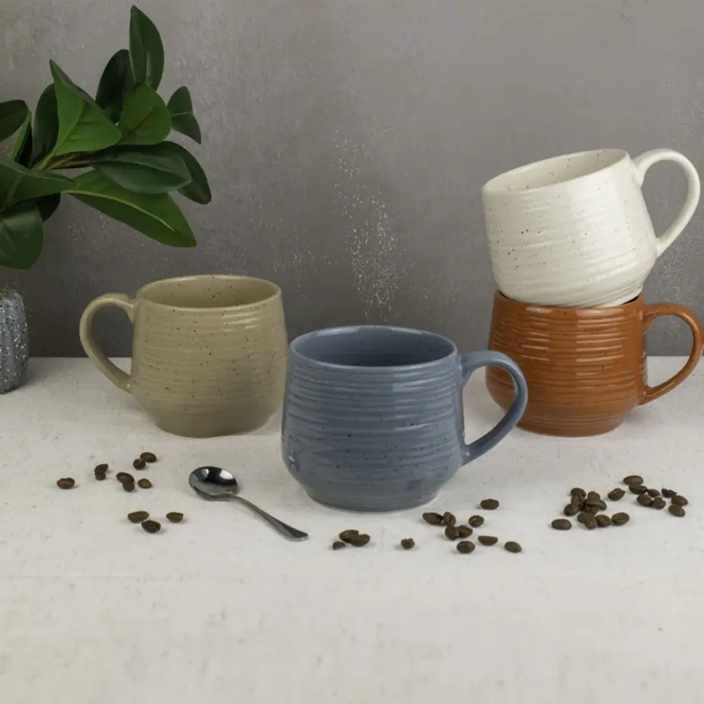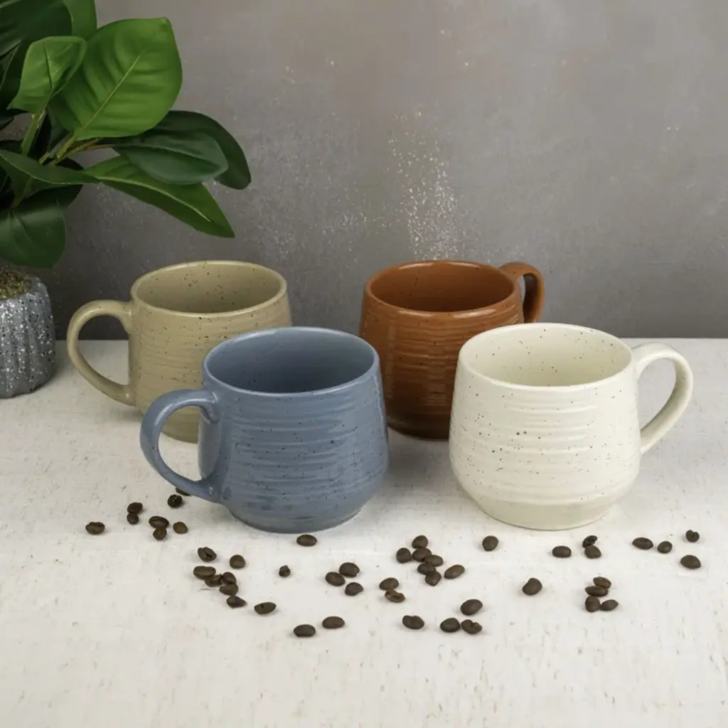 Adding to our much-loved ones, these mugs will complement your own dinnerware set, adding rustic charm and casual elegance to your table and cupboards. Each subtly textured piece is finished with a beautiful translucent color glaze with light speckles.