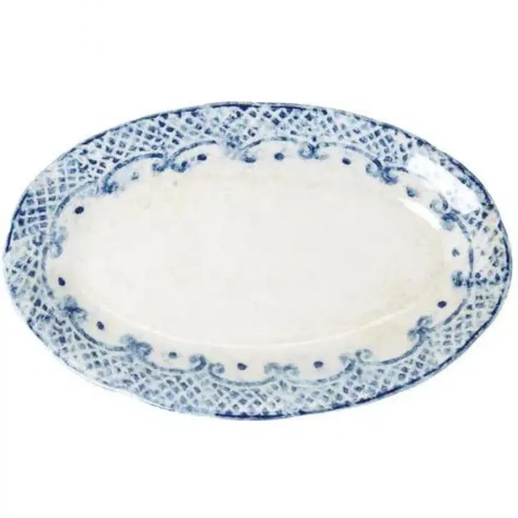 Frame your meal on the playful, fun design of the Santorini Flower Narrow Oval Platter. Drawing inspiration from the native colors of the Greek Isles, Santorini will easily become an everyday favorite in your kitchen. Since 1983, Vietri has specialized exclusively in Italian handcrafted ceramics, stainless and pewter flatware, mouth blown glassware, lamps, urns and planters. Families of artisans with 3 or 4 generations of history create these special pieces using centuries-old techniques. The subtle color from a paintbrush and the curving stroke of the artist's hand are never repeated in quite the same way, making each piece truly unique.