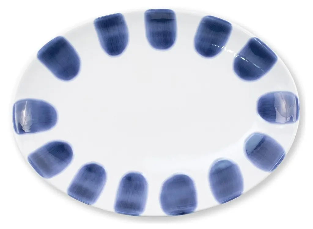 Santorini Global Bazaar White Ceramic Blue Dot Oval Platter