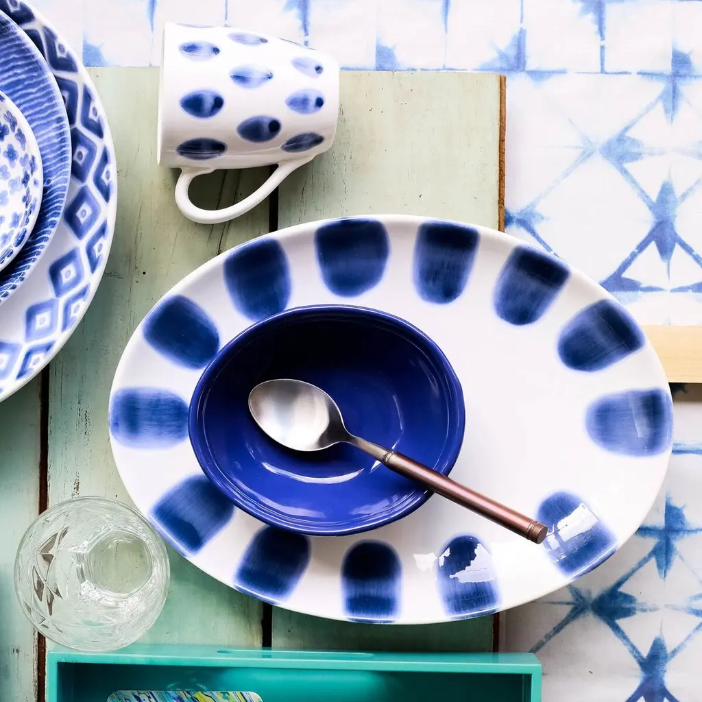Santorini Oval Platter, Blue/white