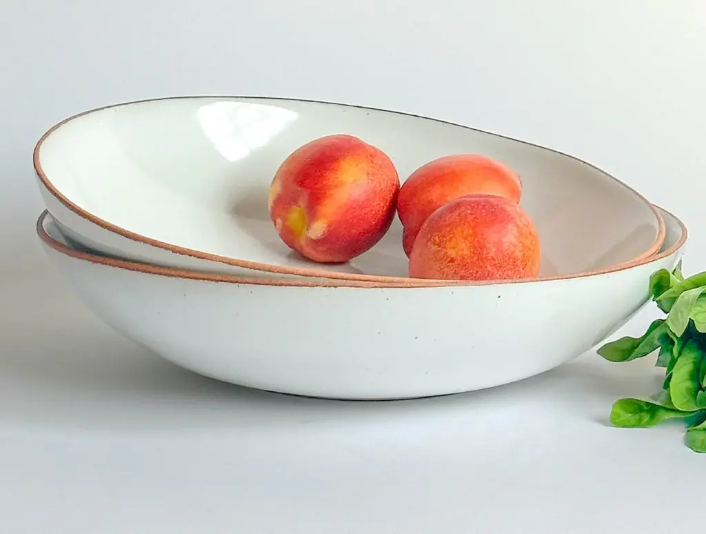 We’ve partnered with Sarah Kersten Studio to bring their artisanal ceramic tableware to Coyuchi. Crafted using custom clay and glaze formulas, this serving bowl is made from durable stoneware that’s lead-free, non-toxic and designed for everyday use or special occasions. With its wide, shallow shape and clean, timeless design, it’s perfect for family-style meals and pairs effortlessly with Coyuchi’s organic table linens. Due to their handmade nature, slight variations in color and finish make each bowl unique.