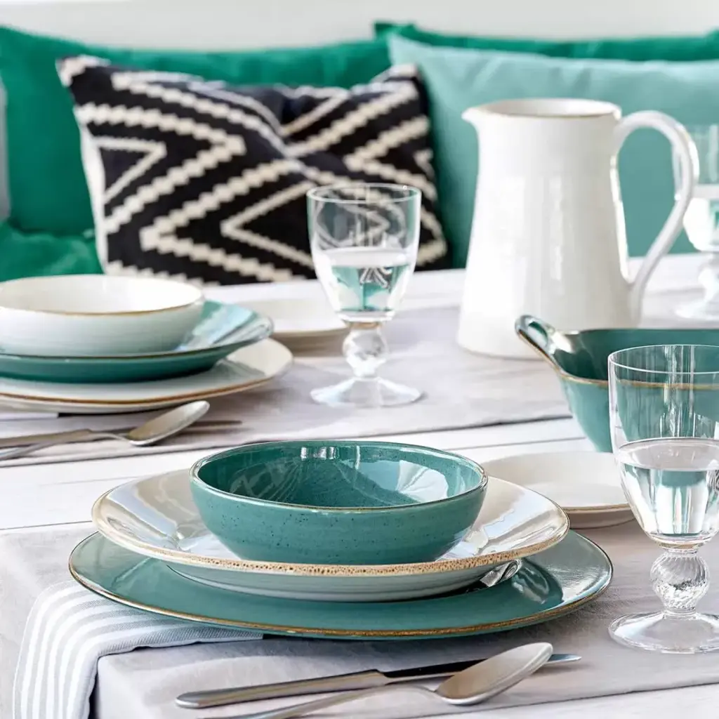 Sardegna has the artistic style of a potter’s creation. The collection includes generously sized dinnerware and a wide assortment of serveware and accessories that are amazingly durable, yet moderately lightweight. All pieces are hand-finished with a rustic glaze around the rim.