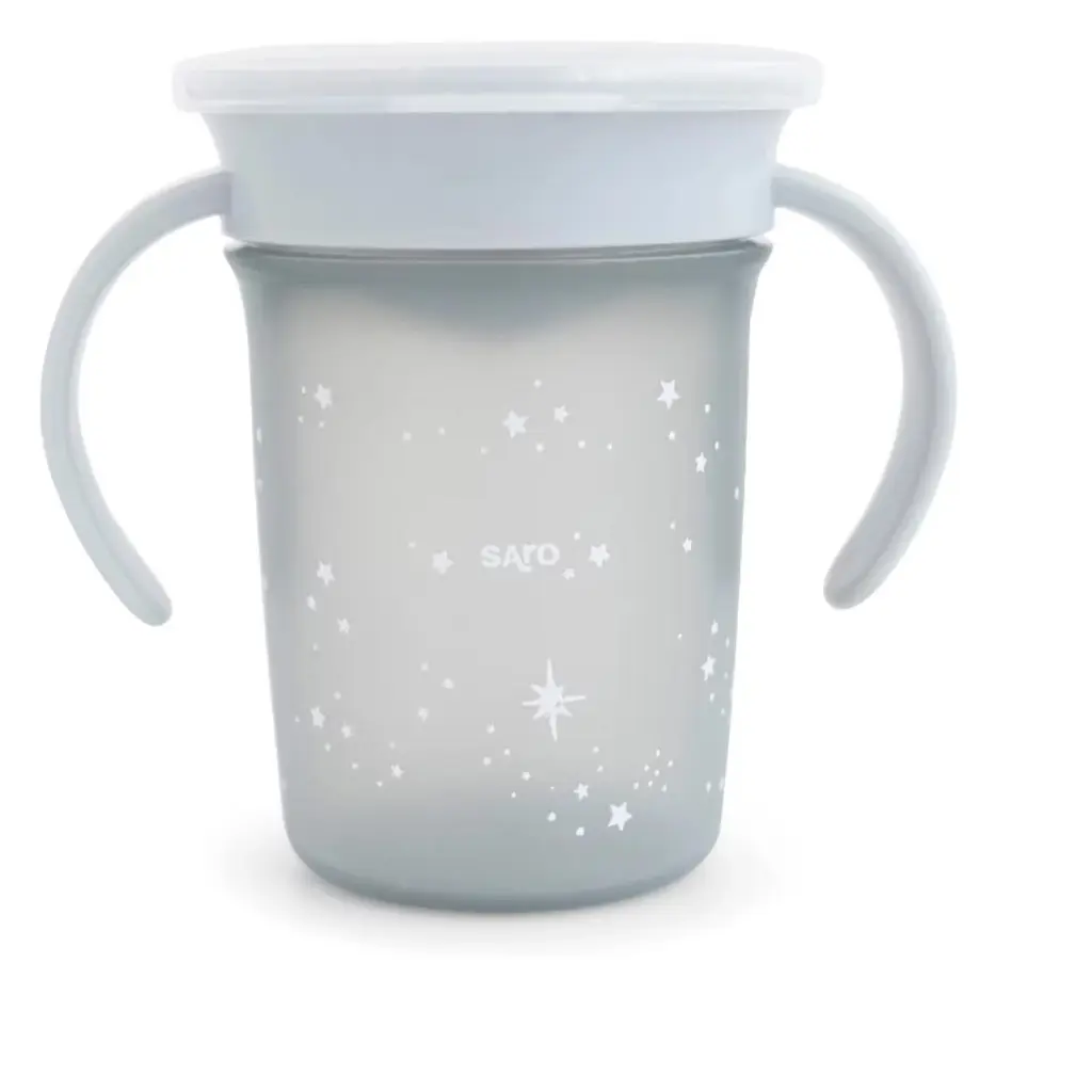 Help your little one master independent drinking with the SARO 360° Spill-Proof Training Cup in a calming dusty blue. This clever cup features a 360° drinking rim that allows toddlers to sip from any edge without messy spills, sealing instantly when they stop. The easy-to-grip double handles are designed for small hands, making it comfortable and secure for them to hold. A snap-on lid keeps the cup clean when on the go. Made from BPA-free materials, this 9 oz anti-drip cup is a practical and safe choice for your toddler's transition to open cups.