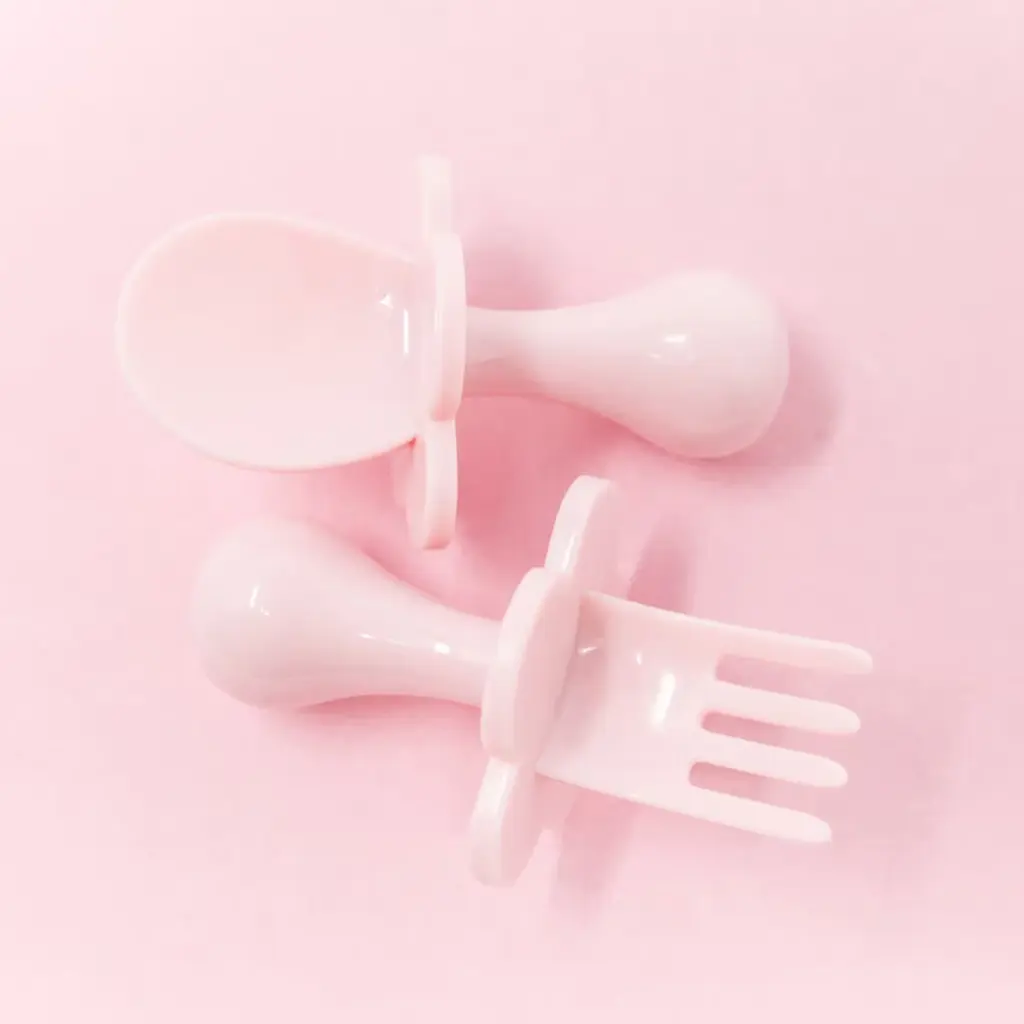 Saro “Nordic” Blossom Training Utensil Set: Silicone Ergonomic Spoon & Fork For Baby-led Weaning | Anti-choke Design