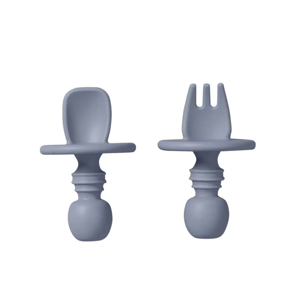 Saro “Nordic” Hunter Mint Training Utensil Set: Silicone Ergonomic Spoon & Fork For Toddler Self-feeding | Anti-choke Safety Design