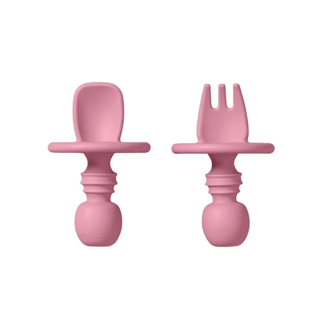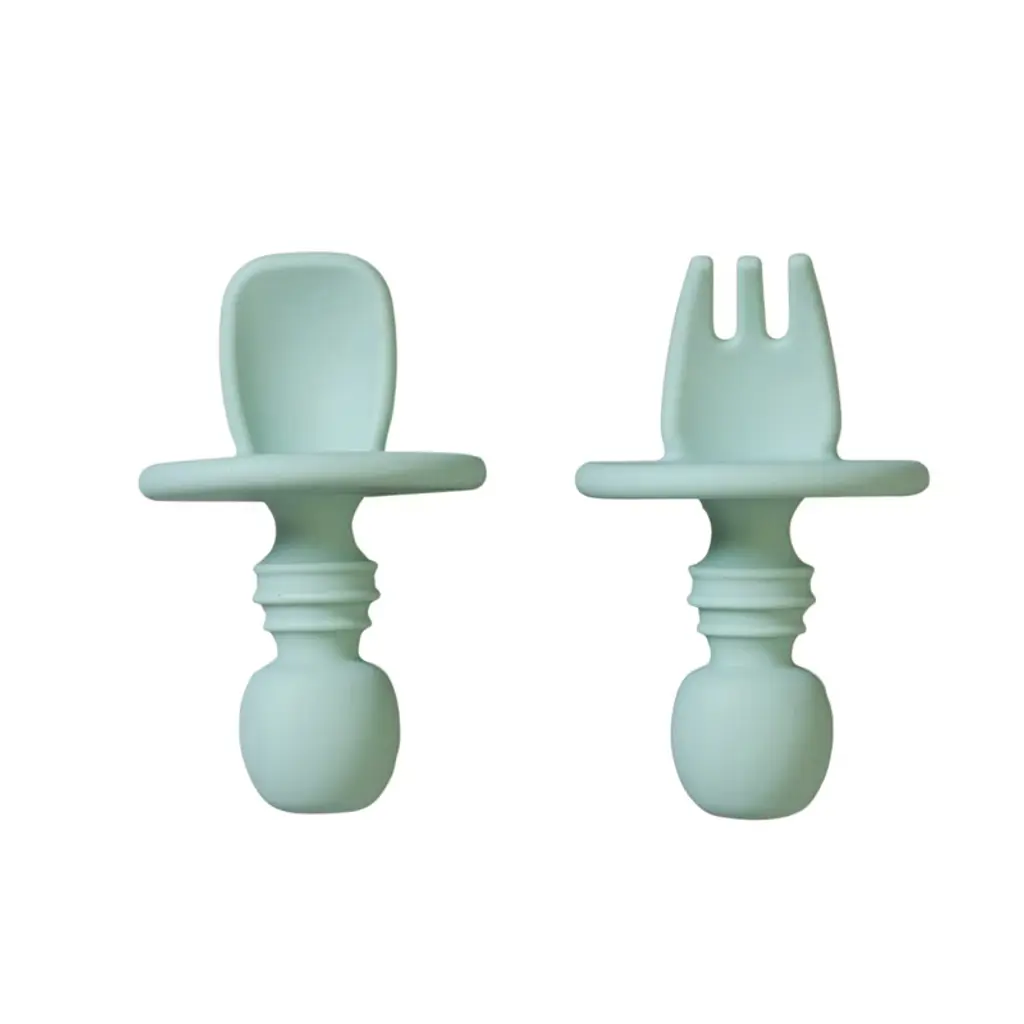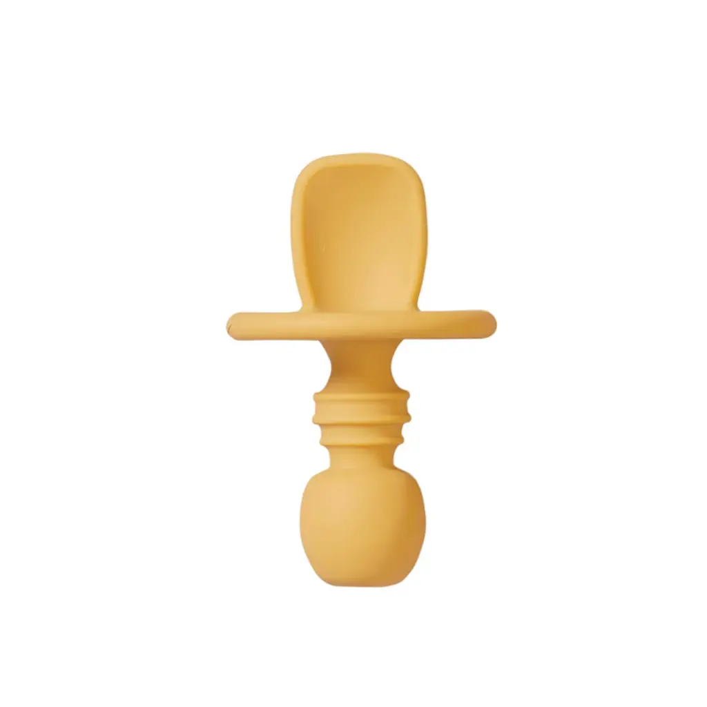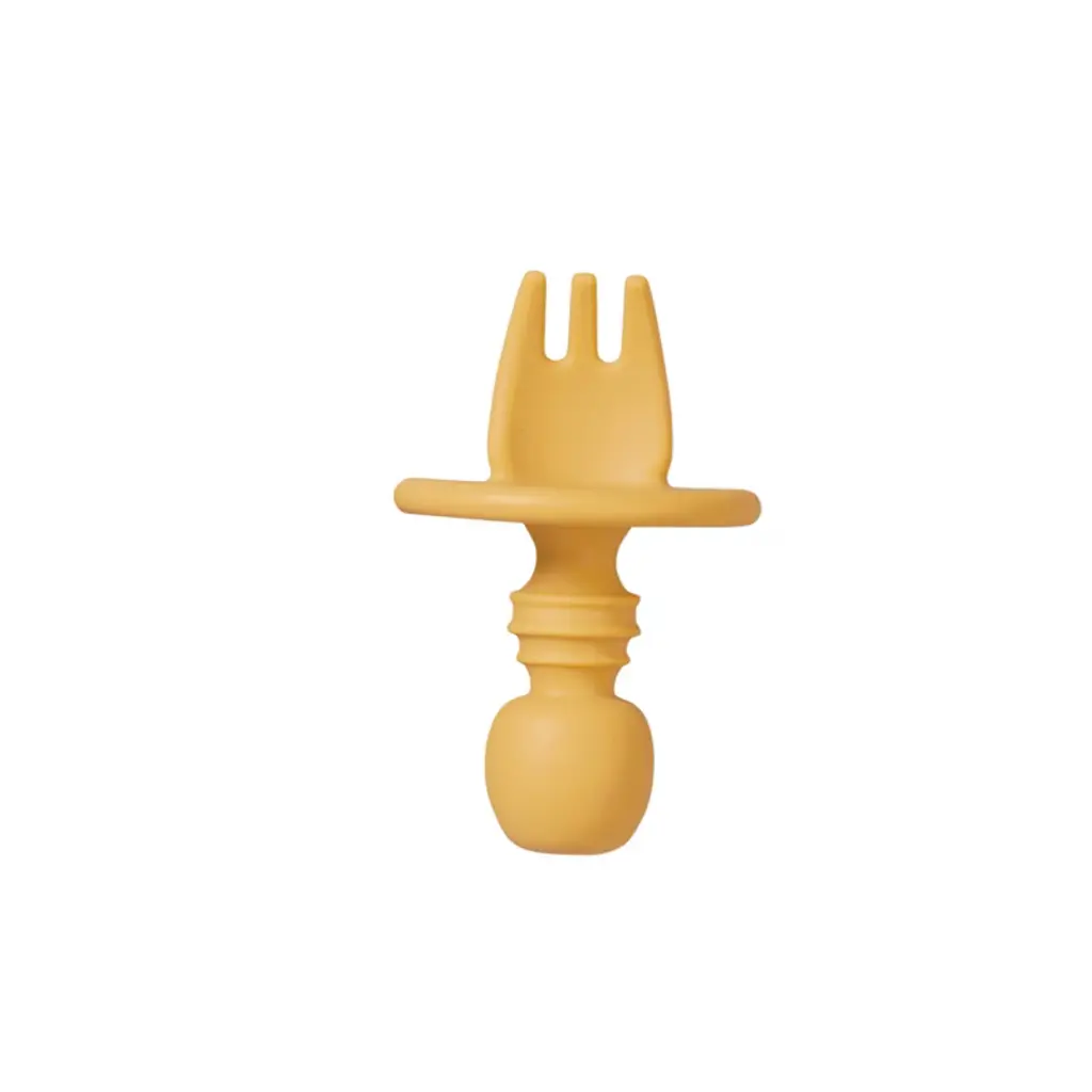 Saro “Nordic” Mustard Training Utensil Set: Silicone Ergonomic Spoon & Fork For Toddler Self-feeding | Anti-choke Safety Utensils