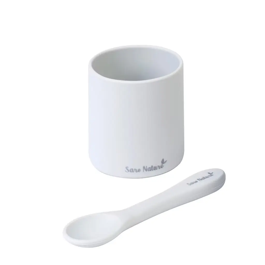 Saro "Nordic Party" Silicone Baby Feeding Set - Glacier Grey: Suction Plate, Spoon & Cup For Toddler Self-feeding