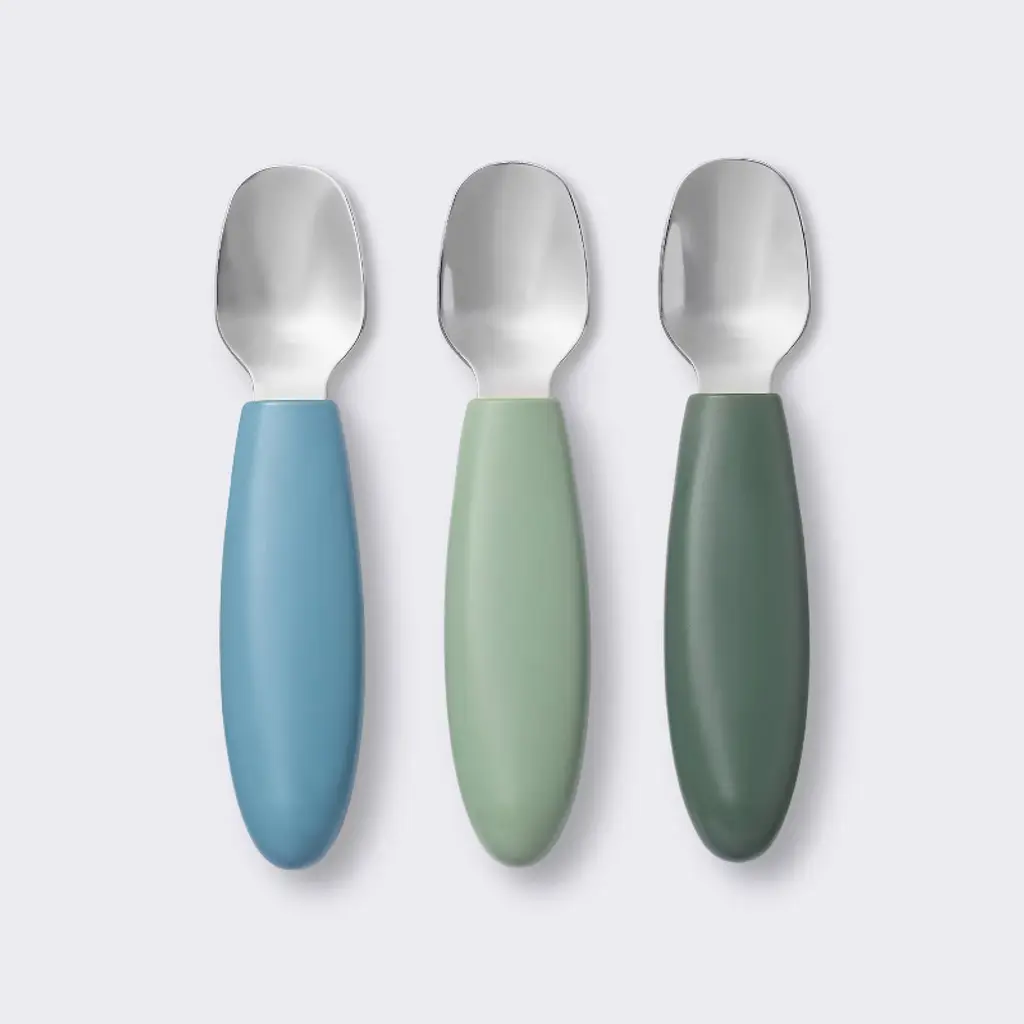 Saro Set Of 3 Silicone Training Spoons - Mist + Mustard + Hunter: Evolutionary Baby-led Weaning Utensils