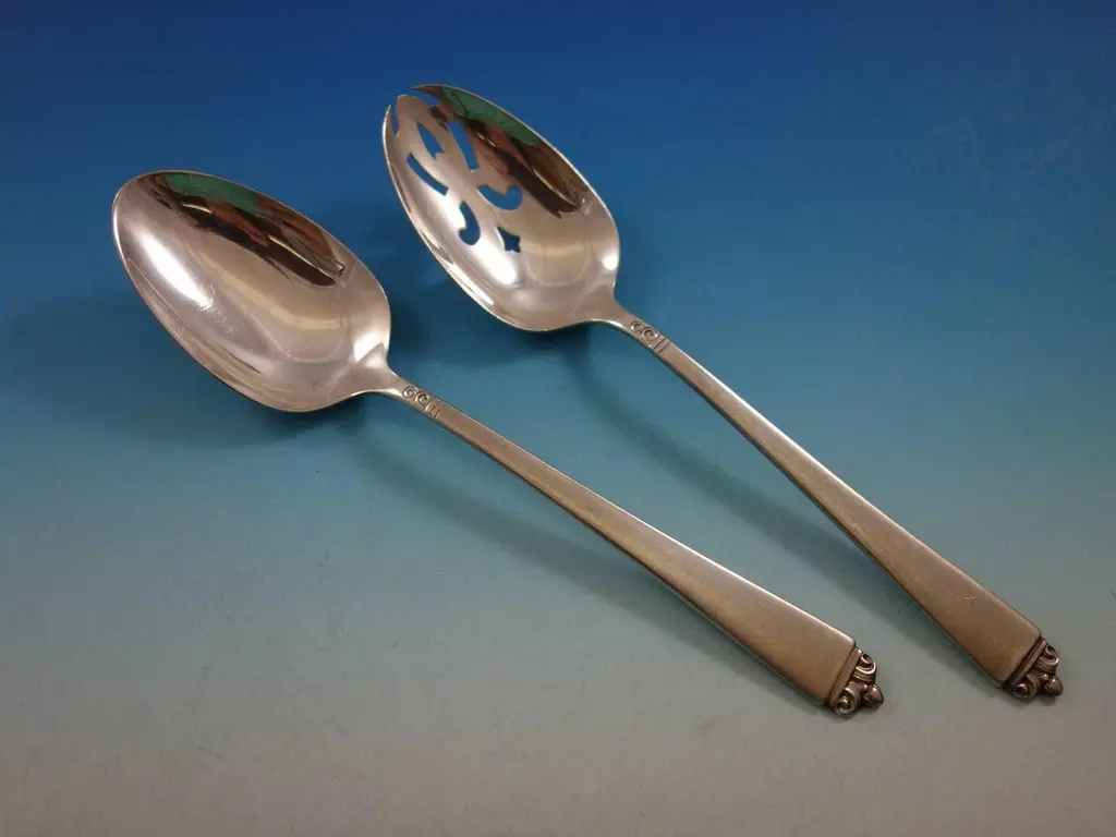 Satin Beauty by Oneida sterling silver flatware set with satin finish of 28 pieces. Great starter set! This set includes: Six knives, 8 7/8", six forks, 7 1/4", six salad forks, 6 1/2", six teaspoons, 6 1/4", one serving spoon, 8 1/4", one pierced serving spoon, 8 1/4", one cold meat fork, 8", one hollow handle master butter, 6 3/8".Includes bonus brand new Towle wooden flatware drawer caddy. Very good condition, with no monograms. This set will be hand polished prior to shipping. 100% satisfaction guaranteed!We buy silver. Please inquire.