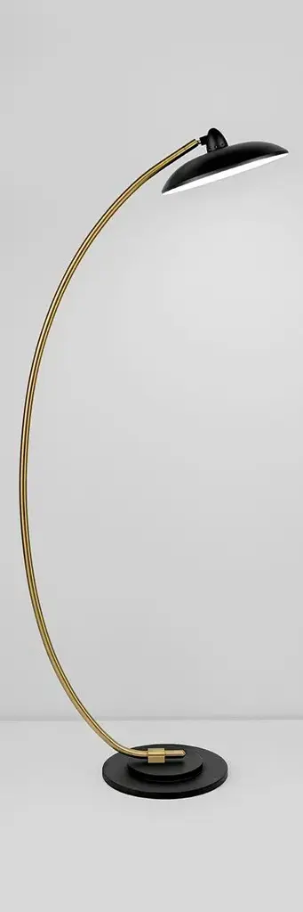 Satin Black With Brushed Brass Saucer Floor Light