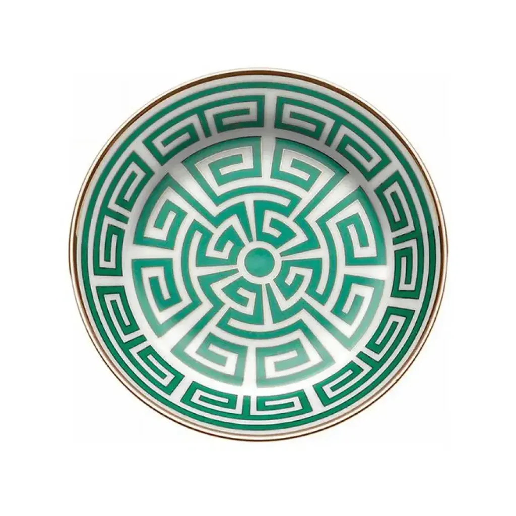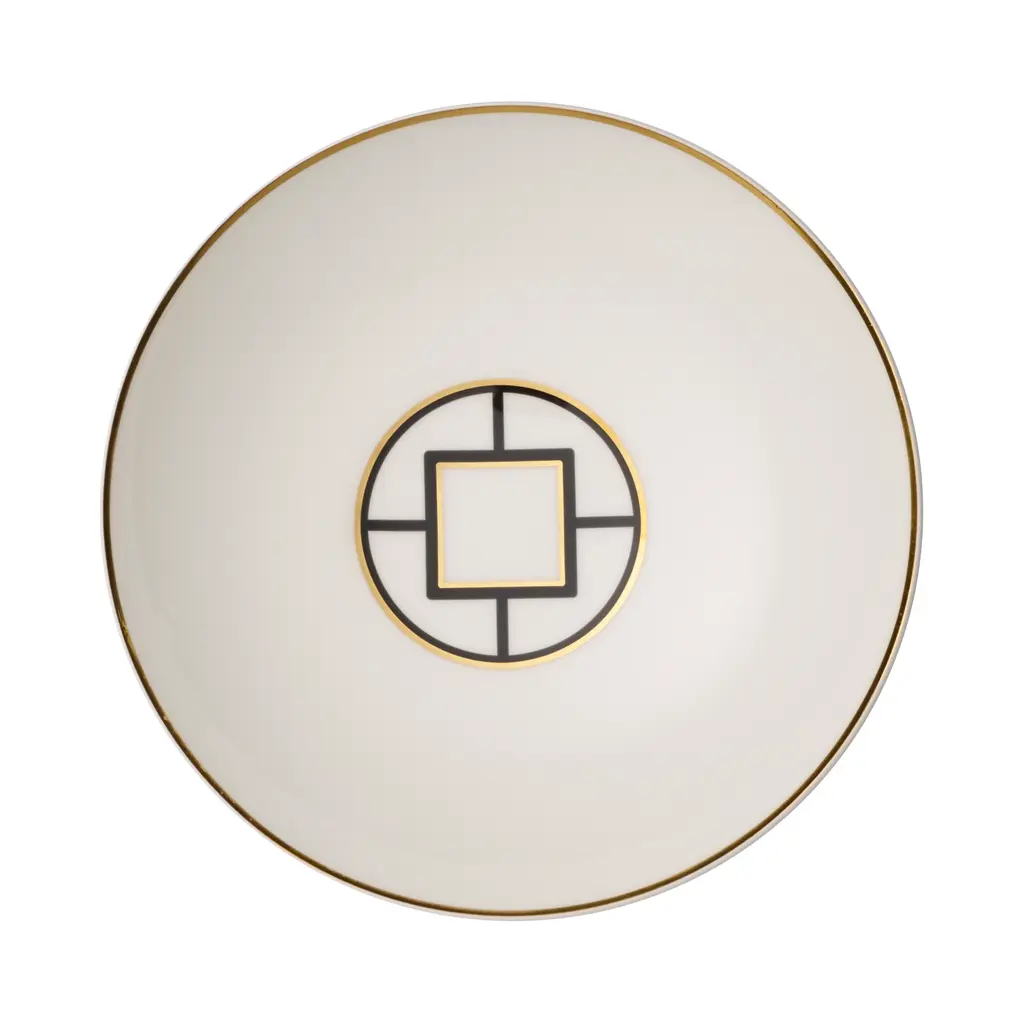 Using a symmetrical pattern in this contemporary design with an inspired interpretation representing longevity in wishing a harmonious and unified life. Satori is offered in striking black with hand applied 22 carat gold detail against the translucent purity of the fine bone china or in the softer light and pearlescent shade edged in platinum. This new range exemplifies a mixture of cultures and traditions which advocates the idea of western culture meeting east in offering a luxurious style to suit any fine dining experience. The Royal Crown Derby Porcelain Company manufactures the highest quality English fine bone china and collectibles at its headquarters in Derby, England (the English Pottery district). Although the present factory was established in 1878, the original factory was set up nearby in Nottingham Road in 1750. Queen Victoria granted permission to include the title "Royal" in the company name in 1890.