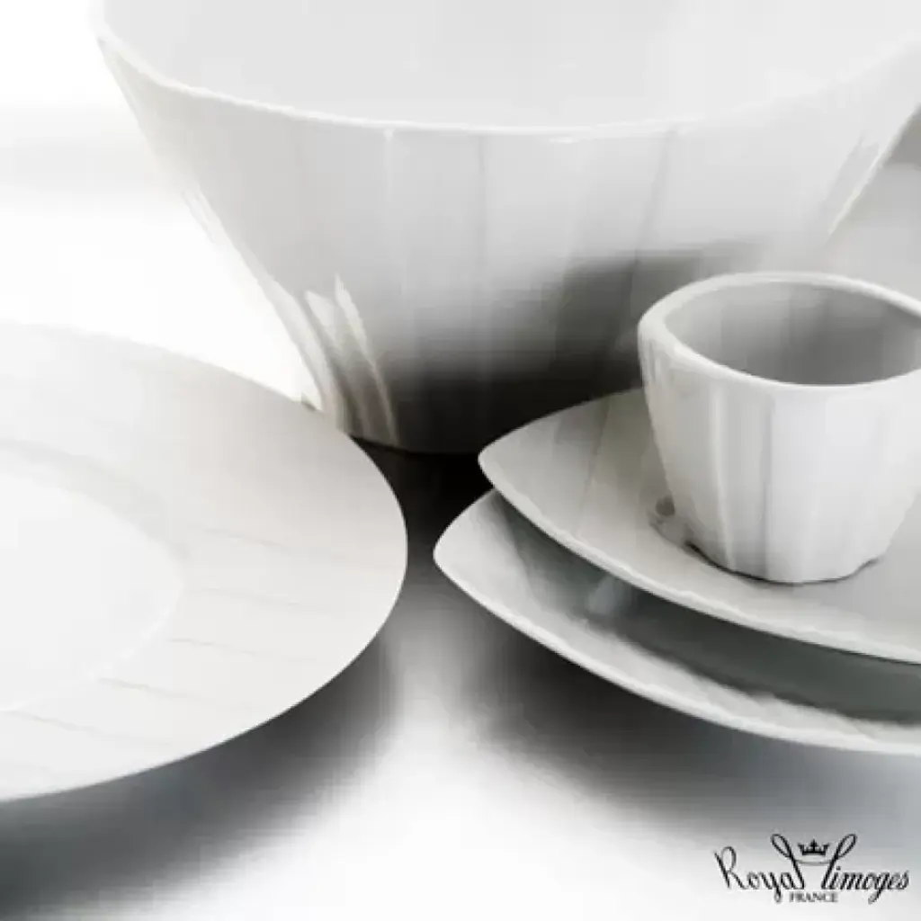 A classic white dinnerware pattern, Saturne will show off your culinary creations at their finest. Five-piece place setting includes dinner plate, dessert plate, bread/butter plate, teacup, and saucer. As the oldest porcelain factory in the French city of Limoges, Royal Limoges boasts a long history of creating hand crafted dinnerware from its own kaolin clay. Since 1797, its exclusive patterns have been enjoyed by clients worldwide.