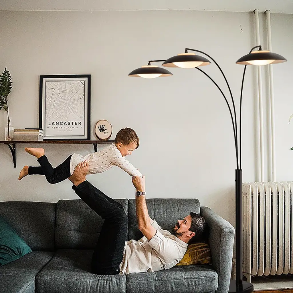 The Saucer 3 Light Arc Floor Lamp is a contemporary marvel that puts a new twist on a classic modern design. Dressed in a sleek Matte Black finish, this floor lamp redefines elegance with its powerful LED module, creating an ambient glow and broad downlight that transforms your living space. The adjustable spread and rotation ensure versatility, gracefully curving over a sofa or chair. Built with contract-grade quality, Saucer is not just a lamp; it's a statement of lasting style and innovation. Experience modern elegance reimagined with the Saucer 3 Light Arc Floor Lamp - where classic meets cutting-edge.