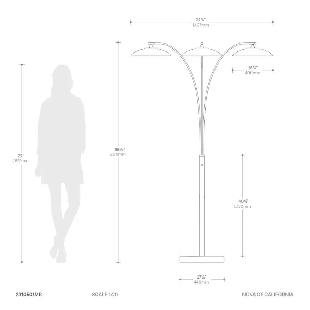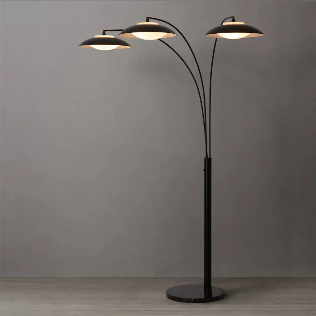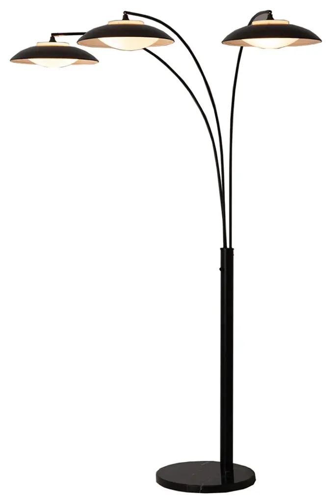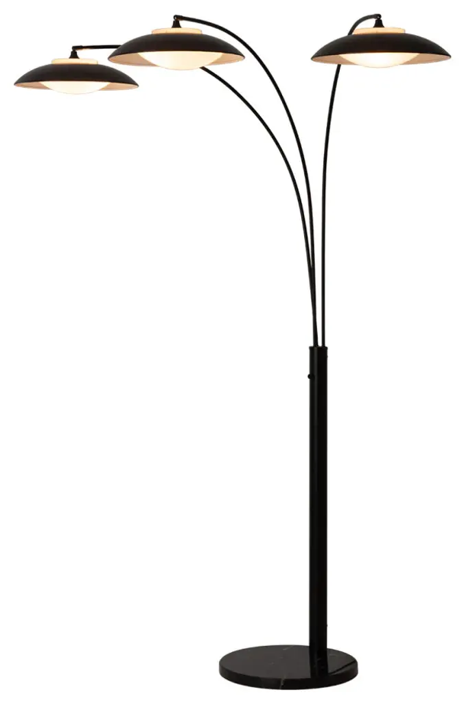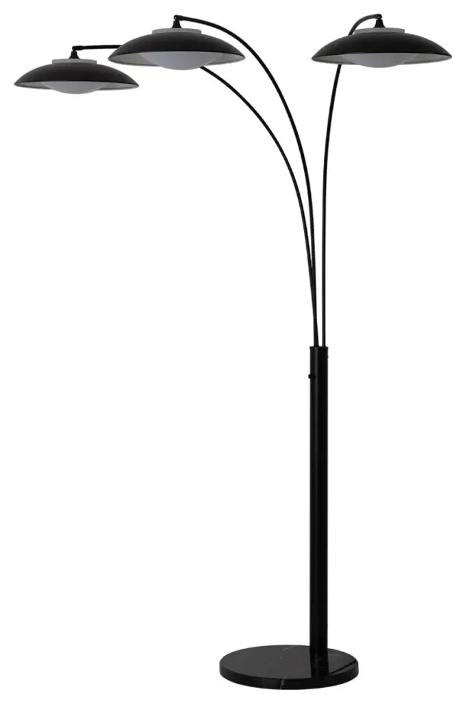 Introducing the Saucer 3 Light Arc Floor Lamp, a contemporary marvel that puts a new twist on a classic modern design. Dressed in a sleek Matte Black finish, this floor lamp redefines elegance with its powerful LED module, creating an ambient glow and broad downlight that transforms your living space. The adjustable spread and rotation ensure versatility, gracefully curving over a sofa or chair. Built with contract-grade quality, Saucer is not just a lamp; it''s a statement of lasting style and innovation. Experience modern elegance reimagined with the Saucer 3 Light Arc Floor Lamp - where classic meets cutting-edge.• The Saucer 3 Light Arc Floor Lamp offers a new take on classic modern design, bringing a fresh perspective to your interior.• Illuminate your space with a powerful LED module that delivers an ambient glow and broad downlight, creating a captivating lighting experience.• Enjoy versatility with Saucer''s adjustable spread and rotation.• Saucer gracefully curves over a sofa or chair, adding a touch of sophistication and style.• Equipped with easy-to-use dimming controls, allowing you to adjust the light intensity according to your mood and needs.• Anchored by a sturdy marble base, Saucer not only stands tall in elegance but also ensures stability and durability.• Smart switch compatible - effortlessly sync with Amazon Echo, Google Assistant, and Apple Home for easy & automated control.• Contract grade: high quality materials, quality workmanship, built to last a lifetime & designed in Venice Beach, California. • NOVA of California is the oldest light company in North America and has been making original contemporary designs for 100 years. • Sustainability statement: We are committed to minimizing the unwanted impact our business has on the environment. We care for our planet.Nova of California offeres a variety of high quality lighting designs to choose from. Explore the entire collection to find the perfect piece for your home.