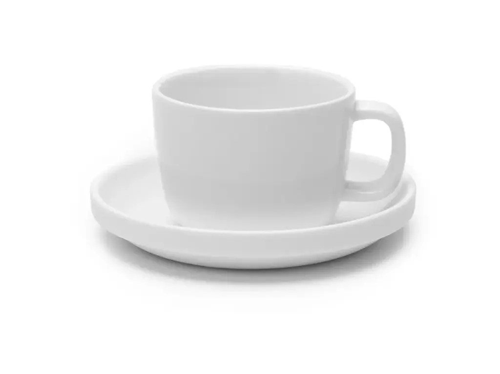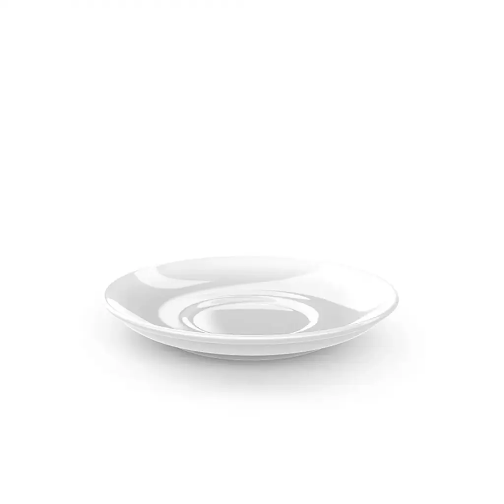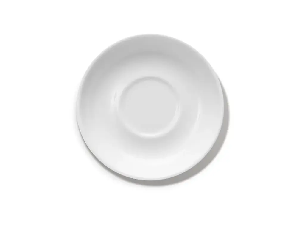Saucer Espresso Passe-partout is a saucer made of porcelain.This porcelain saucer goes with the cappuccino cup and radiates peace and calm. The Passe-Partout collection combines a minimalist design with bright white for timeless appeal. The aesthetic appearance of our product is enriched by its matte finish on the outside. However, the matte, more porous, surface contributes to susceptibility to stains, so we recommend washing the product immediately after use. This prevents stains from penetrating the material.With the porcelain tableware, countless visual effects can be created by stacking or by playing with the contrasting white and black exterior colours. The glasses are vaguely reminiscent of medieval chalices, and the carafes of different sizes serve all purposes. The cutlery and wooden accessories are also no-nonsense, a tad nostalgic, while at the same time very contemporary.