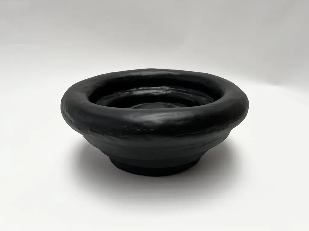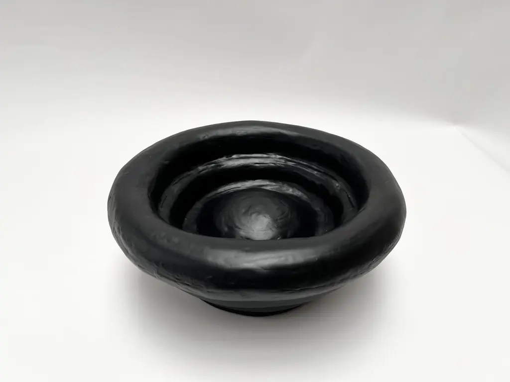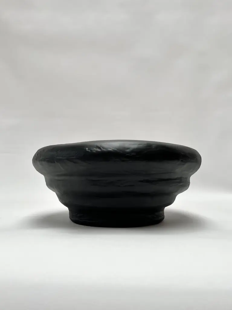 The Saucer Fruit Bowl by Brent Warr is a bold sculptural vessel that merges utility with expressive form. Featuring soft, concentric curves and a deep basin, the piece is hand-shaped with a proprietary gypsum and epoxy blend, then sealed in a sleek black fiberglass finish. Its tactile surface and exaggerated silhouette create a striking tabletop presence, whether styled with fruit or left empty as a standalone statement. A functional accent designed to elevate curated, contemporary interiors.Each piece is made to order and is available in white, black, cream, or custom colors. Brent Warr Studios founder Brent Warr was raised in Georgia, USA and studied at Auburn University’s college of Architecture, Design, and Construction. Before moving to the back to Georgia to start his furniture and lighting studio, he moved to NYC to work for esteemed Interior and Architecture firms Meyer Davis Studio and Yabu Pushelberg. Now located in Bainbridge, Georgia, Warr’s furniture, lighting, sculptures, and interiors projects are defined by a studied balance of fluidity and structure, composition and function. His practice is both intuitive and informed by an understanding of history, process, and materials. Above all, Warr’s guiding principles are humor and storytelling. Brent Warr has been featured in Interior Design Magazine, Architectural Digest, Elle Decor, and Vogue Living to name a few.