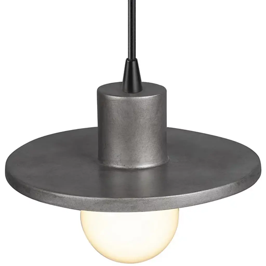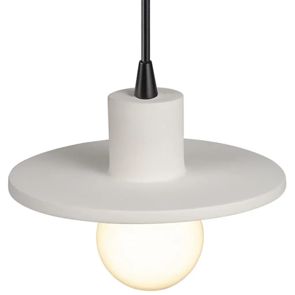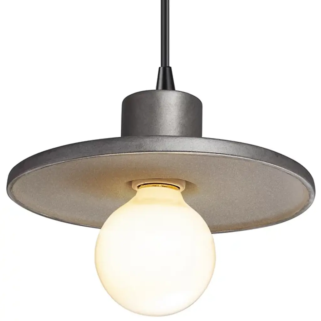 A delicious piece with which to finish off a modern design scheme in a kitchen or dining area. The Saucer Mini Pendant by Justice Design Group has a generally simple, clean form but with subtle details incorporated to add visual interest. It features a gently curved, disc-shaped shade handcrafted of 100% Ceramic, with a raised rim that both completes the pendant’s plate-like look and helps to keep useful ambient light directed downward onto a table or counter.