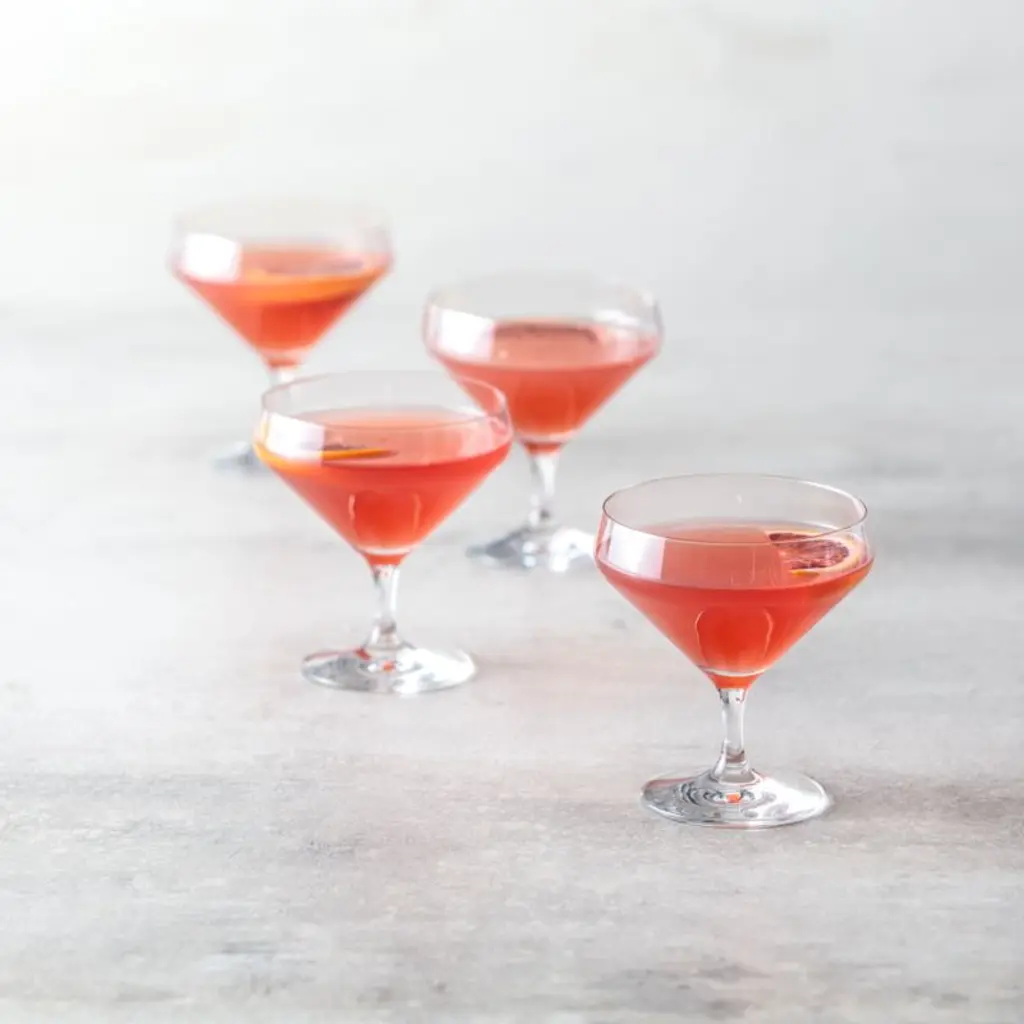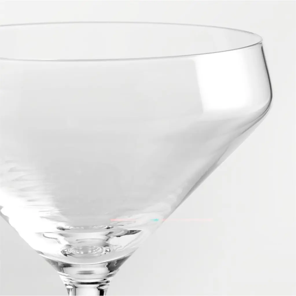 A new angle in stemware from Schott Zwiesel creates Tour's edgy coupe silhouette with exquisite brilliance and pure clarity. Made of break-, chip- and scratch-resistant Tritan glass, the footed glass keeps hands from warming drinks, and the generously sized bowl makes lots of room for cognac or craft cocktails.