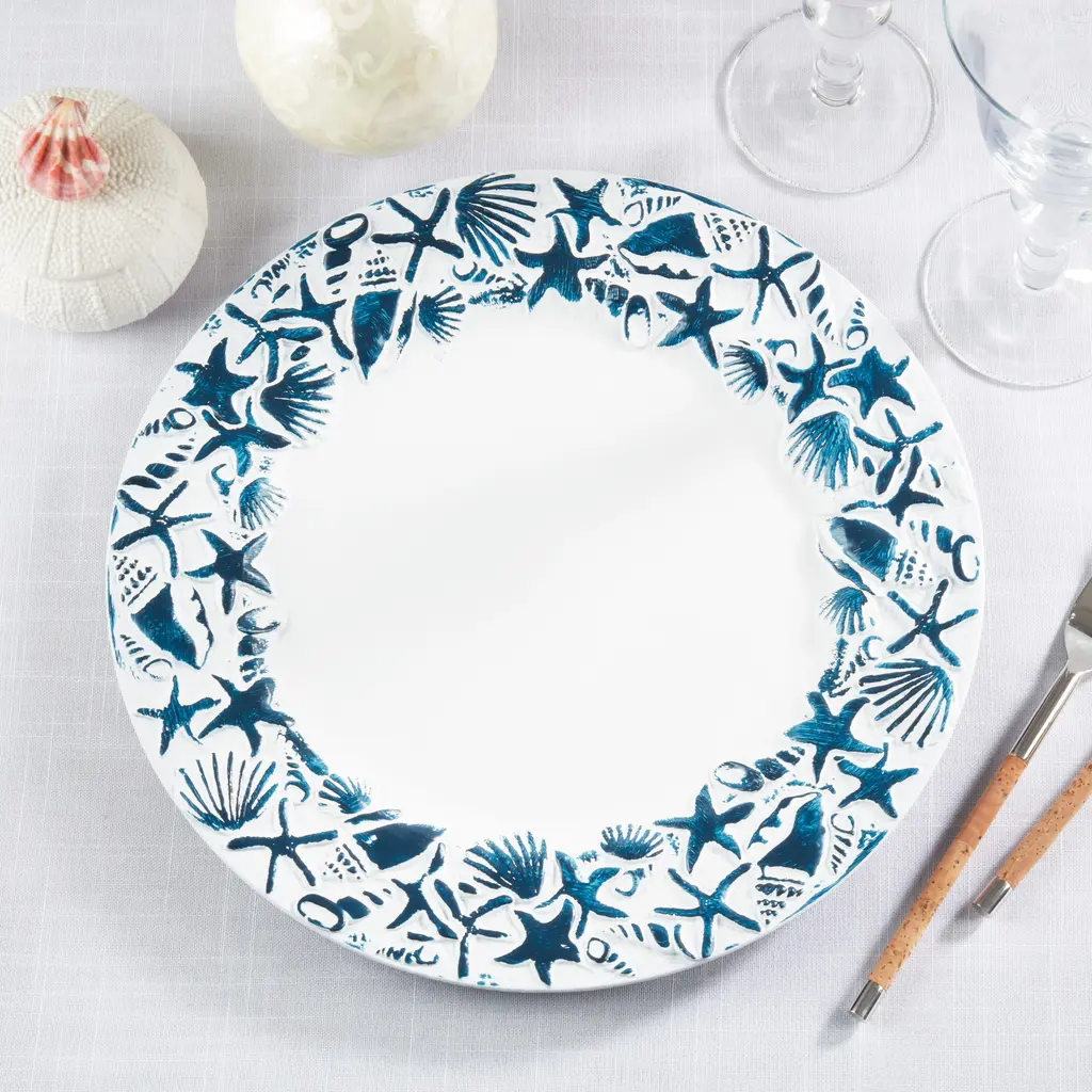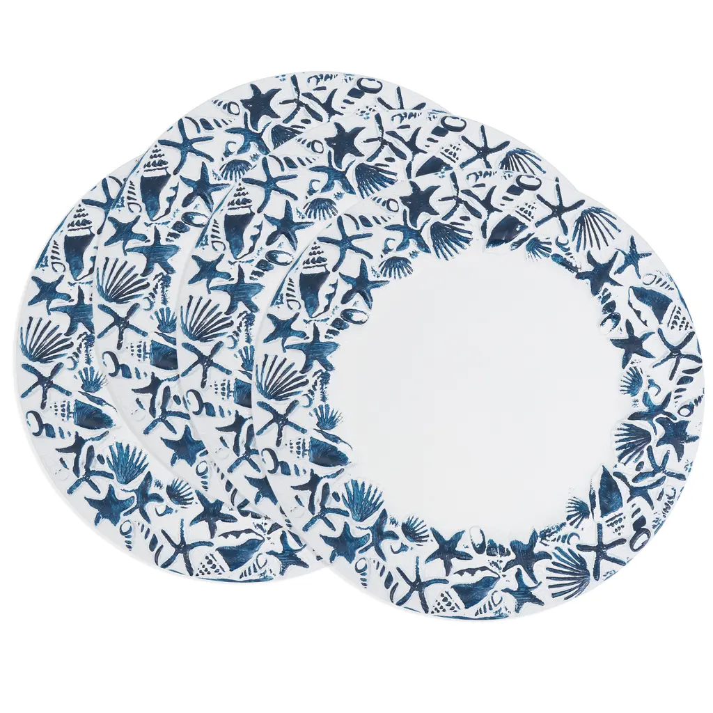 Sea Shell Embellished Charger Plate (Set Of 4) - 4 Piece - Navy Blue