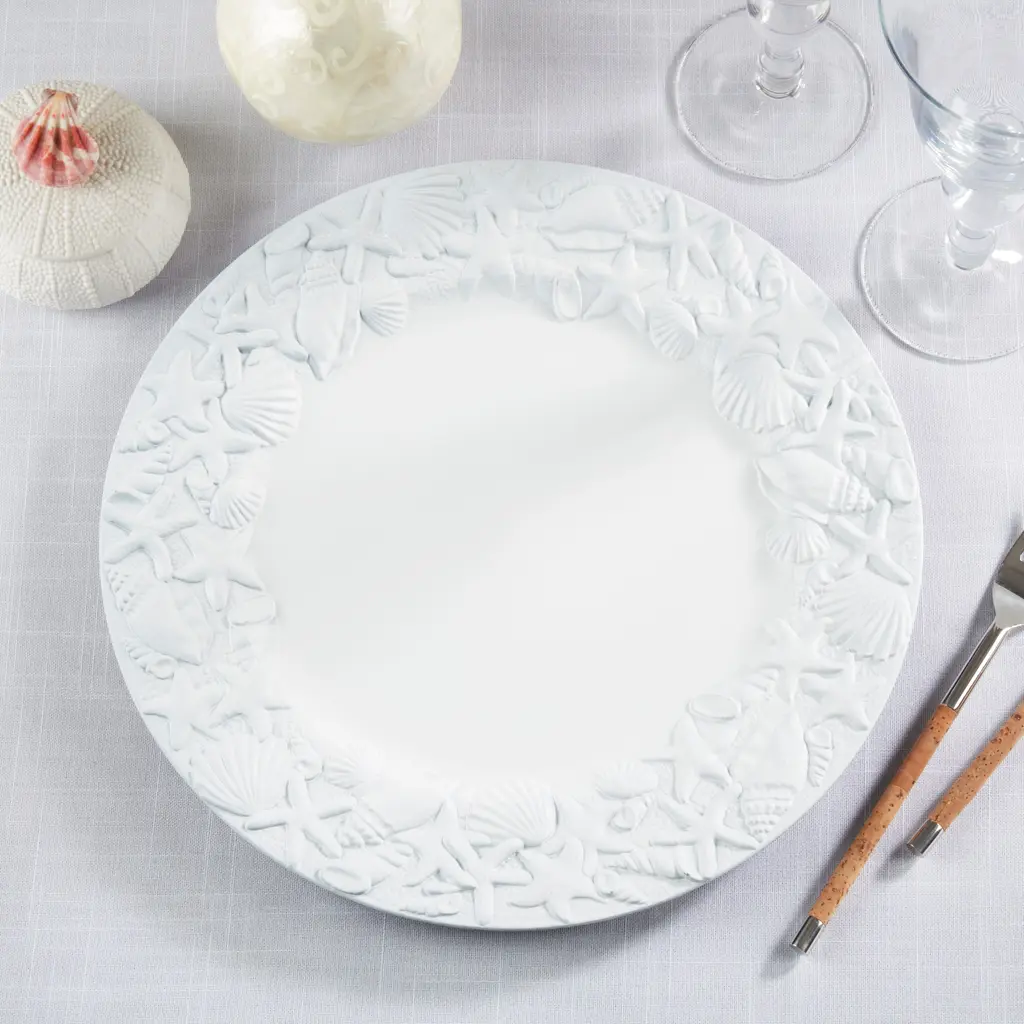 Sea Shell Embellished Charger Plate (Set Of 4) - 4 Piece - White