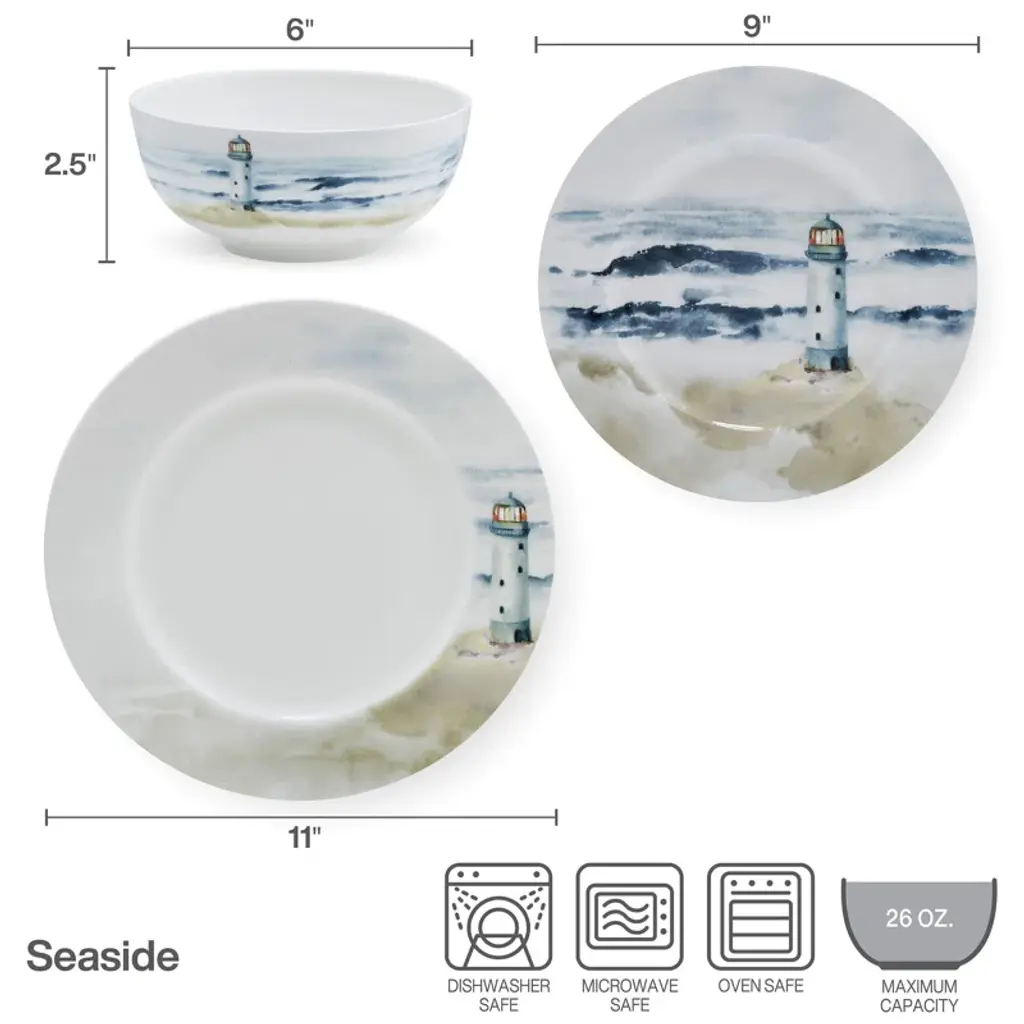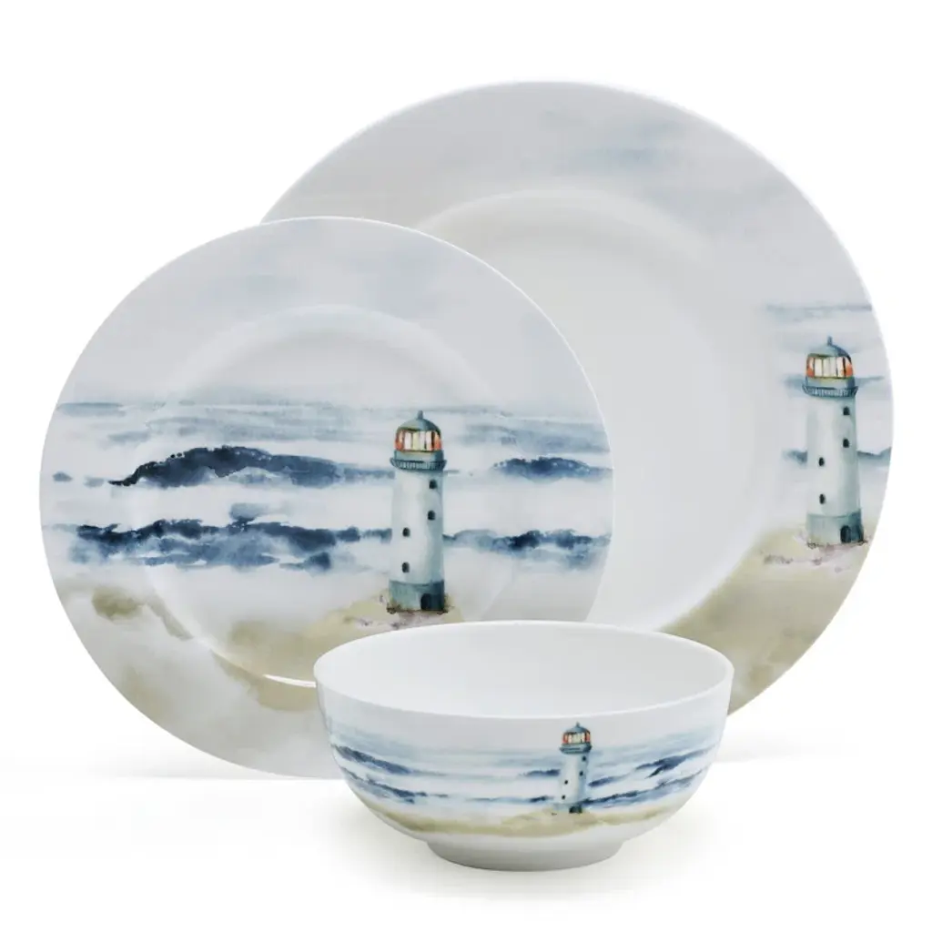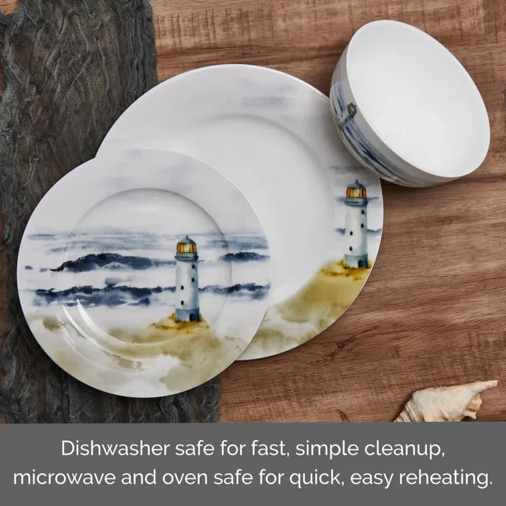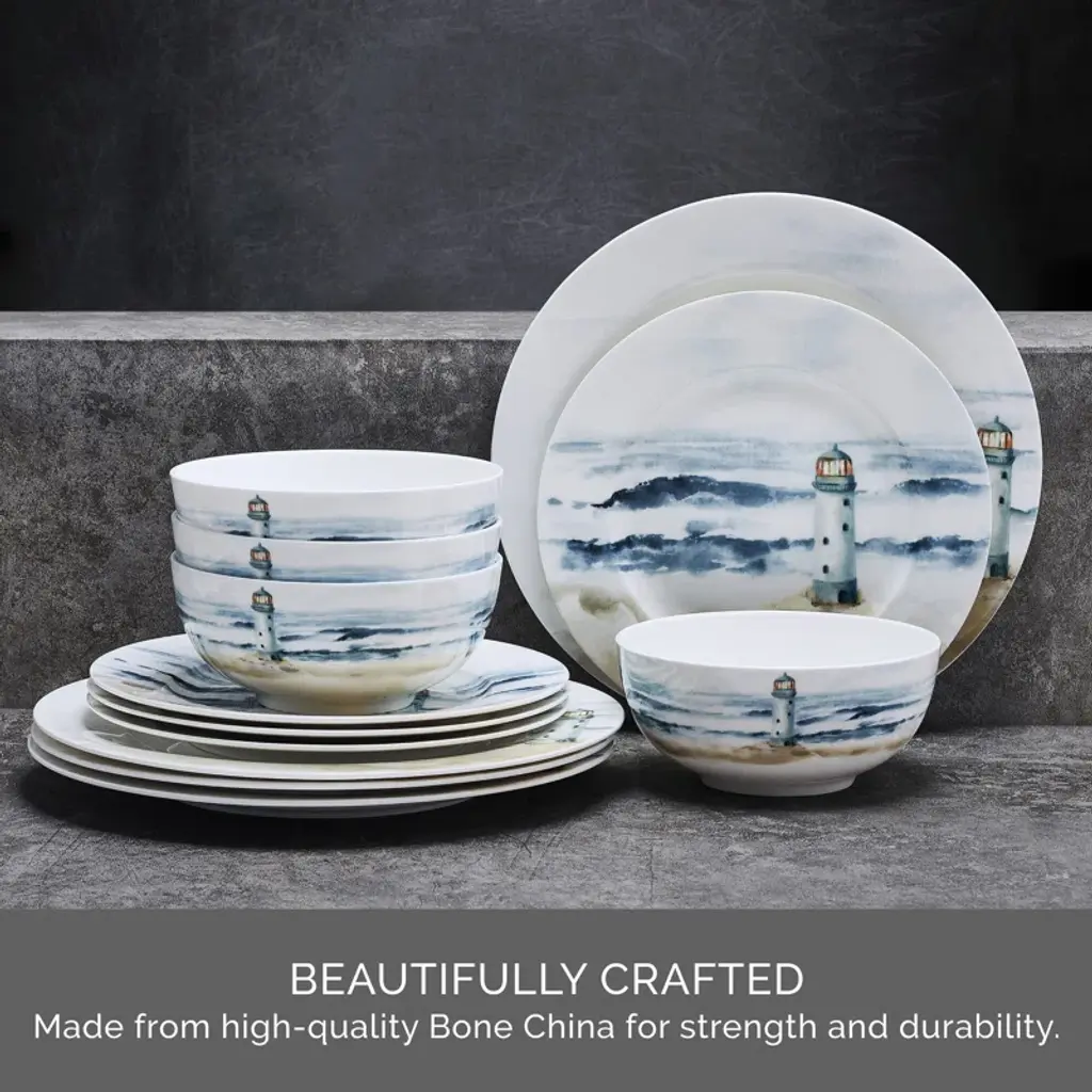 Seaside 12-Piece Lightweight Chip-Resistant Bone China Dinnerware Set, Service For 4