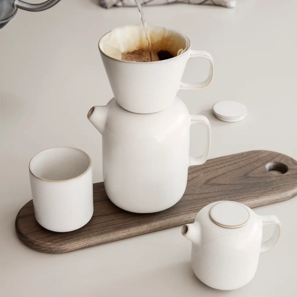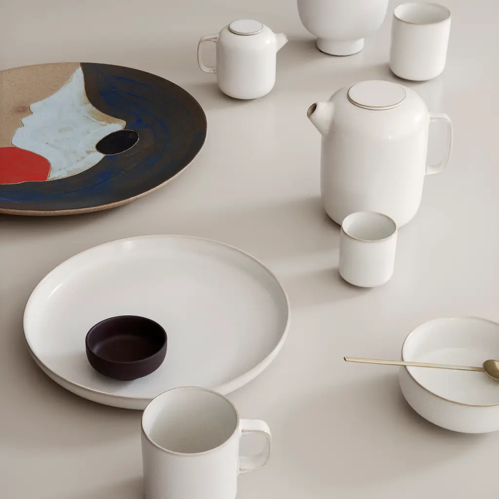 Stimulate your senses with the Sekki Cup that gives a tactile dimension to the coffee and tea drinking experience. Made by Ferm Living, the Sekki collection references the rustic beauty and durability of traditional, handmade ceramics. Each cup is crafted from clay and features cream glazing with a subtle pattern of gray speckles. The rim boasts a muted golden color. The cup has no handle and is a pleasure to hold thanks to the perfectly smooth surface. A foot raises the cup and makes it seem like it floats slightly above the table surface. Dishwasher-safe, the Sekki Cup is as practical as it versatile.